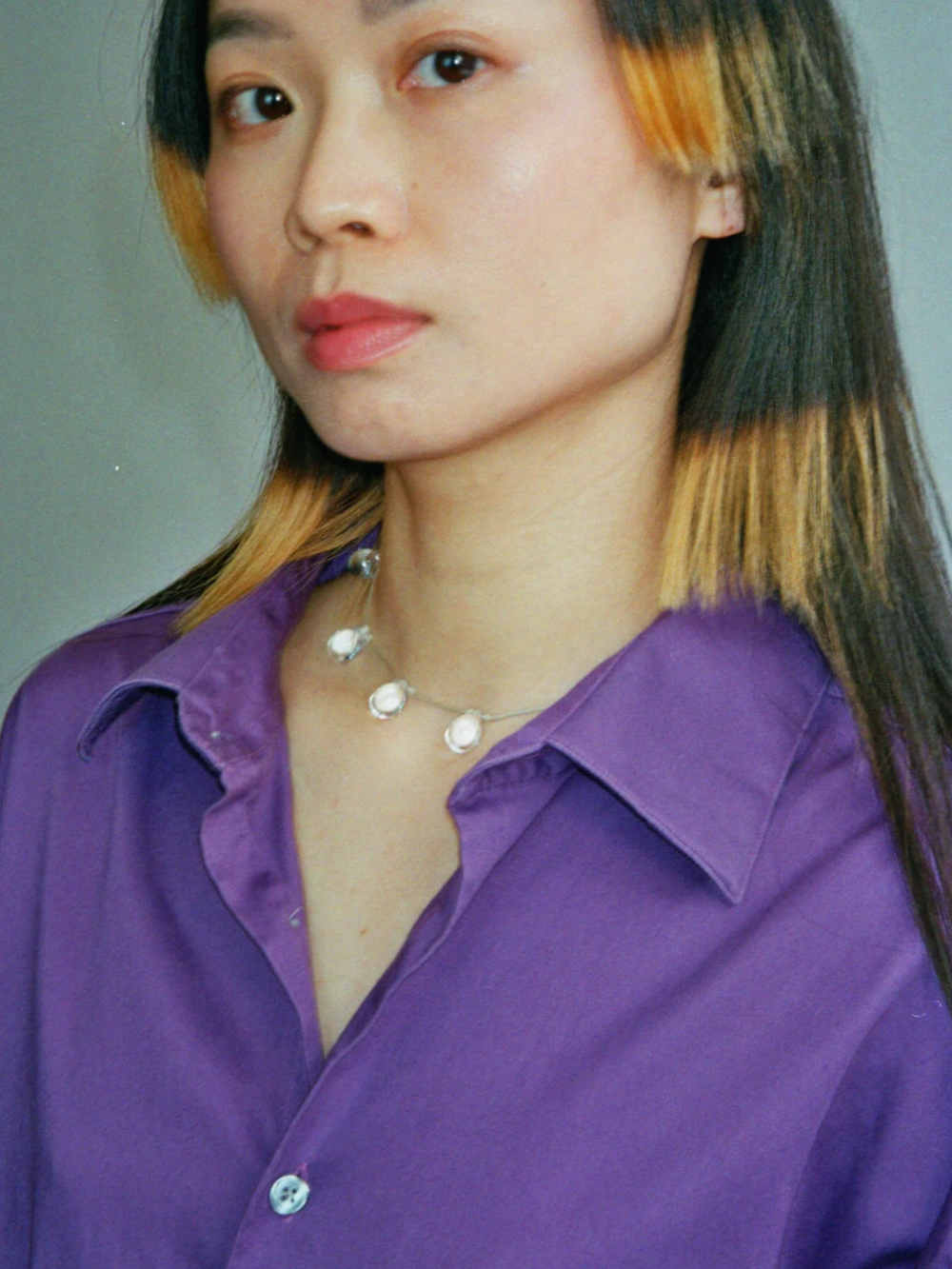 리본에서 영감을 받은 곡선과 메탈의 감각적인 조화