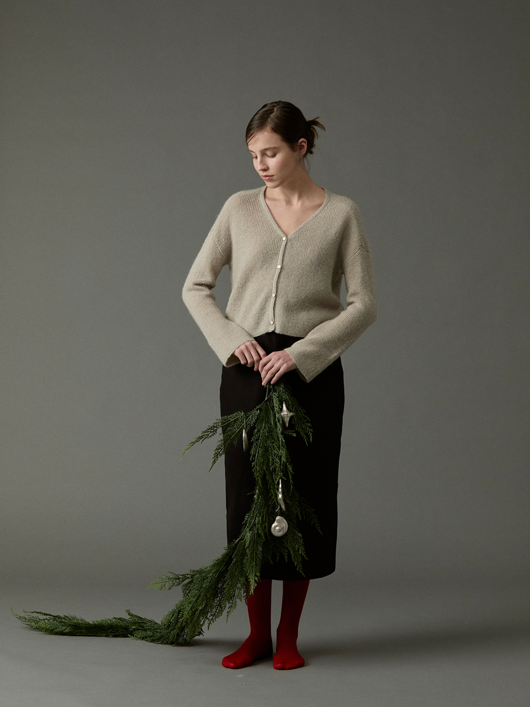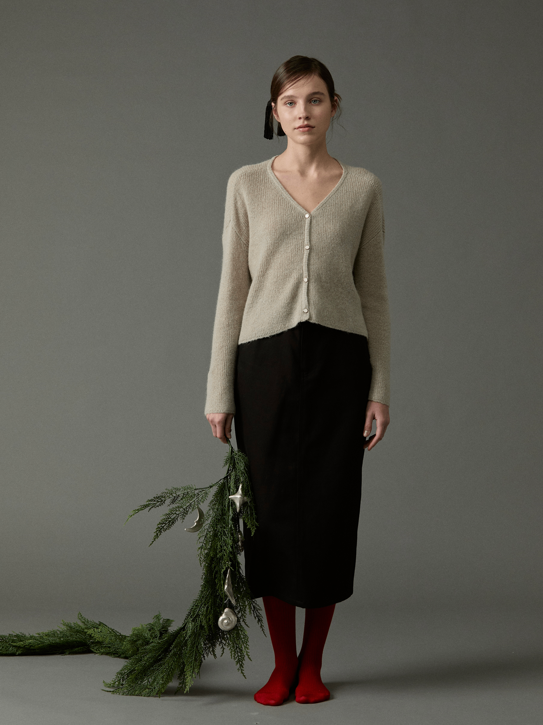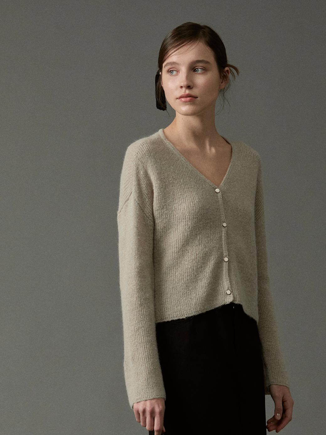 부드러운 키드모헤어와 울을 혼방 소재로 가볍고 포근한 착용감을 선사하는 V-네크라인 카디건입니다.