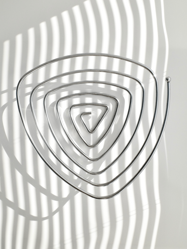 실버 메탈 소재에 스파이럴 패턴, 둥근 받침 디자인이 테이블 위에 특별한 포인트를 더해줍니다.