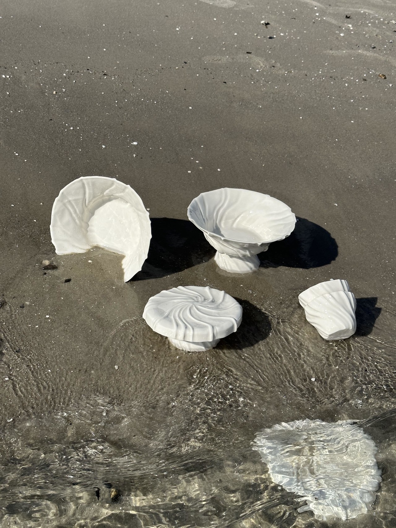 덴마크 해변의 물결 자국을 모티프로 한 수공예 도자기
