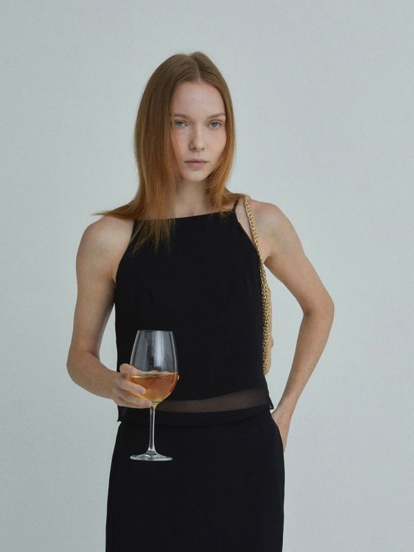 넥라인의 잔잔한 셔링이 페미닌한 무드 강조