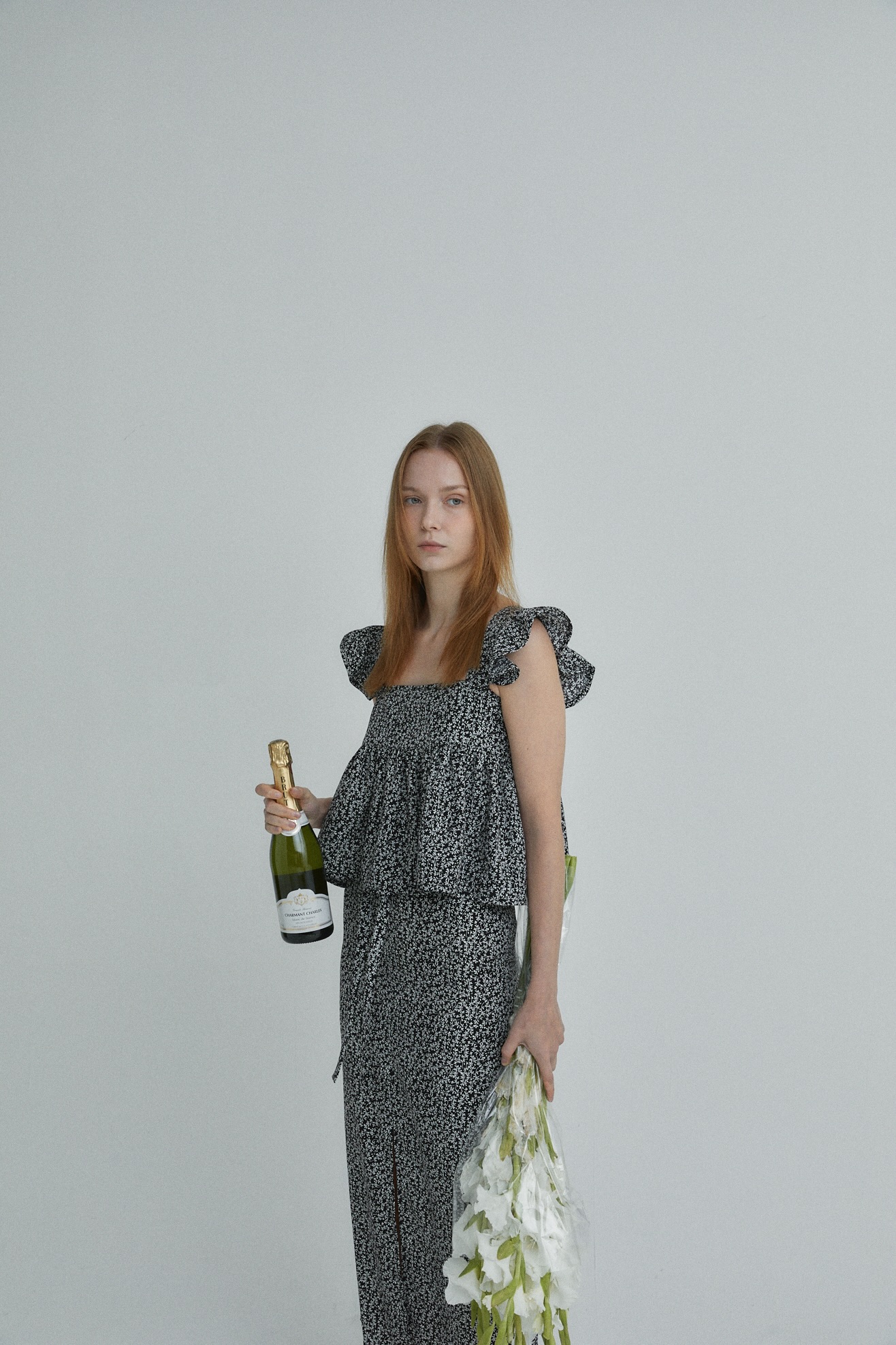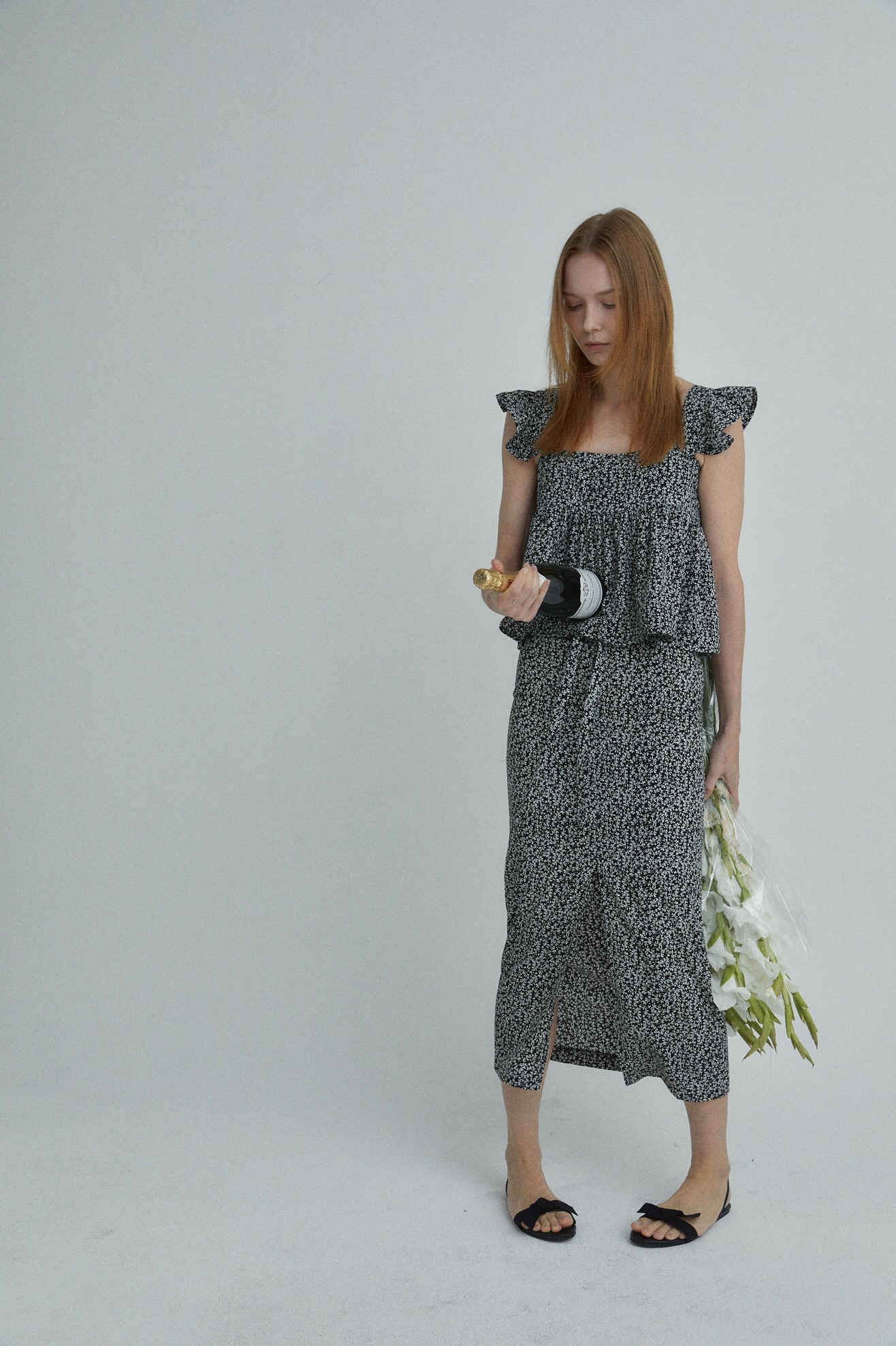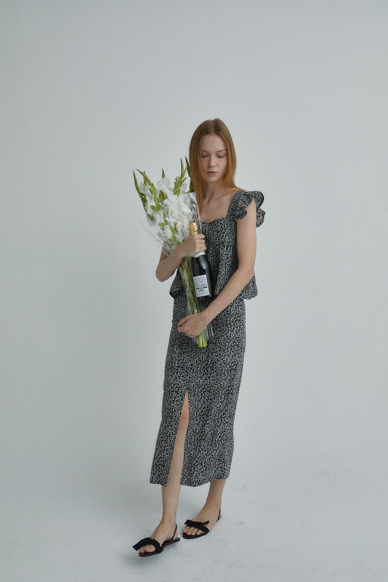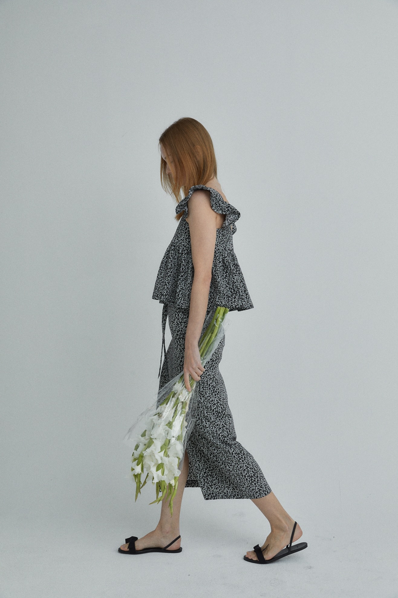 잔잔한 플로럴 소재로 페미닌 무드 강조