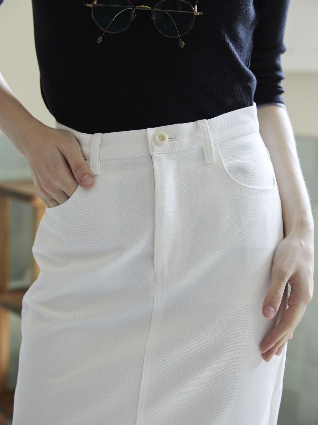 깔끔한 스트레이트 실루엣의 코튼 스커트