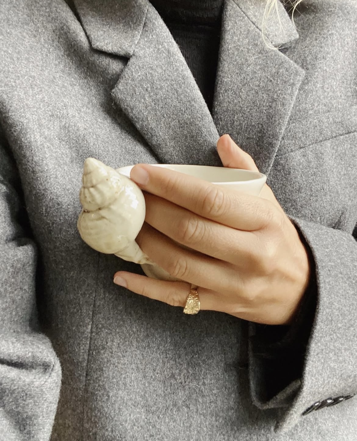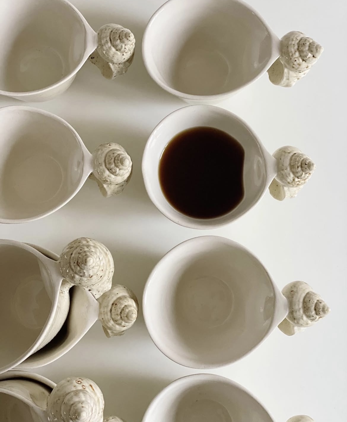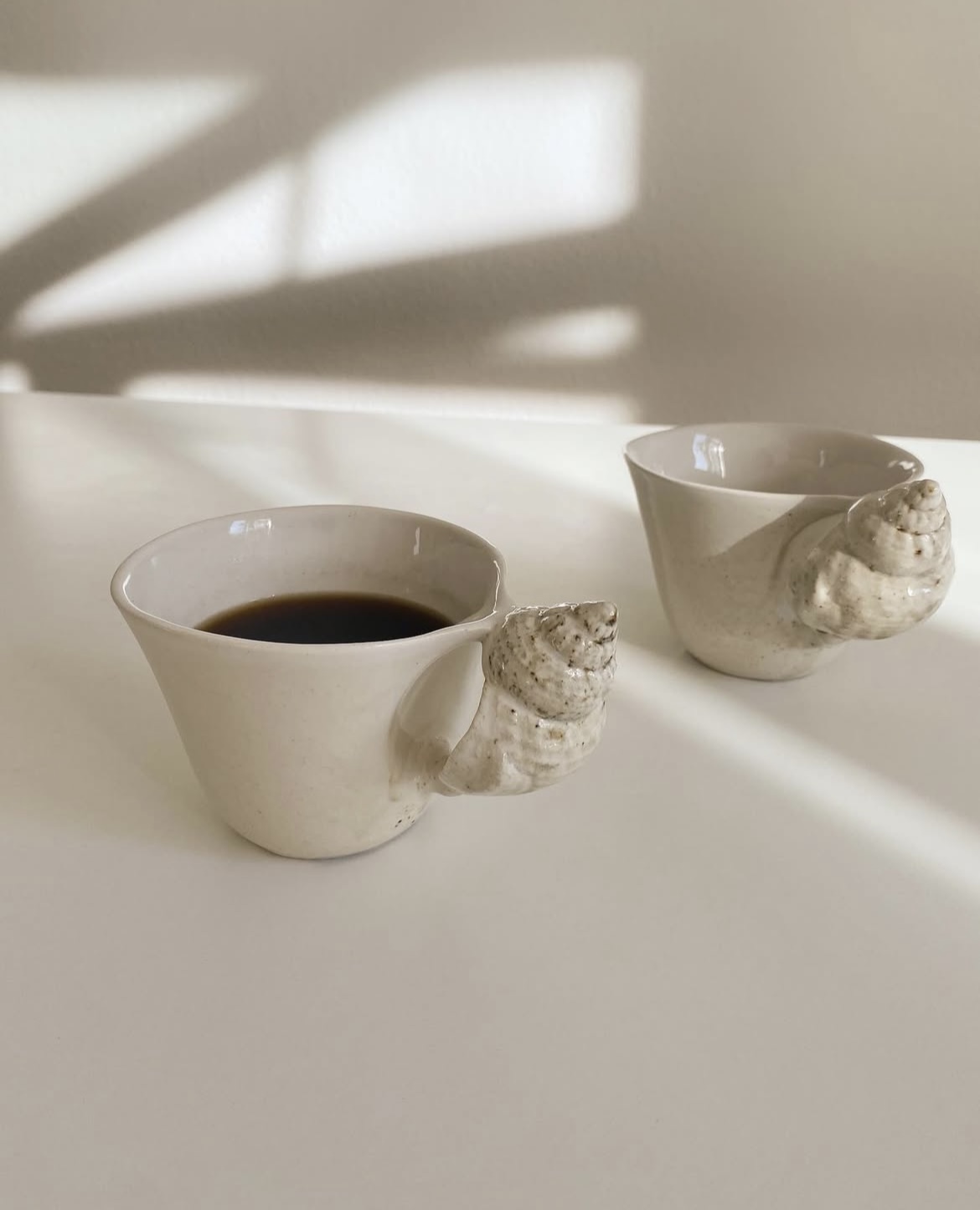 소라껍데기의 우아한 곡선을 모티브로 탄생한 콘킬리에 컵 I의 손잡이는 장인의 수작업으로 완성된 섬세한 디테일을 자랑하며, 그 정교함은 하나의 아트 피스로서의 가치를 더합니다.