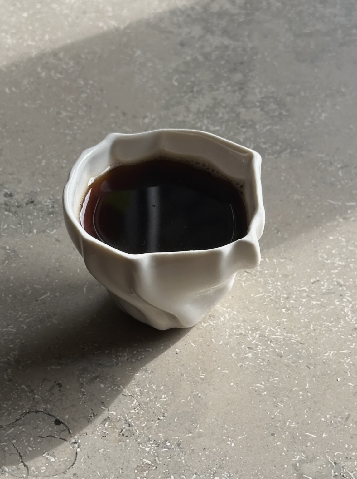 컵 표면의 곡선 디자인은 바닷물이 빠진 뒤 모래 위에 남겨진 잔잔한 물결 자국에서 영감을 받아 탄생하였습니다.