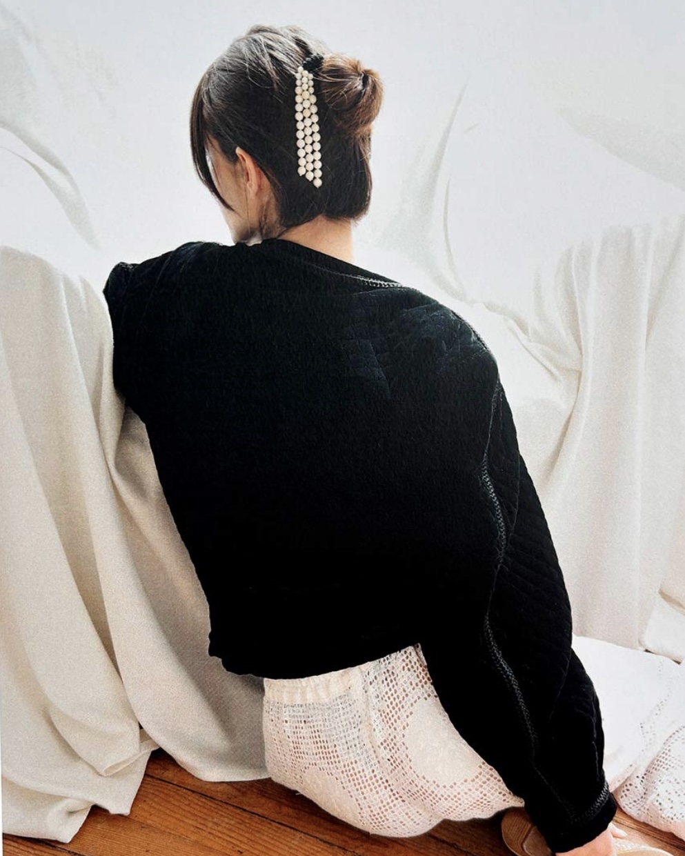 칸데(Cande) 콤은 재활용 셀룰로오스 아세테이트로 제작된 헤어 액세서리로, 제이드 태슬과 발렌시아 전통 공방의 실크 코드로 장식되었습니다.