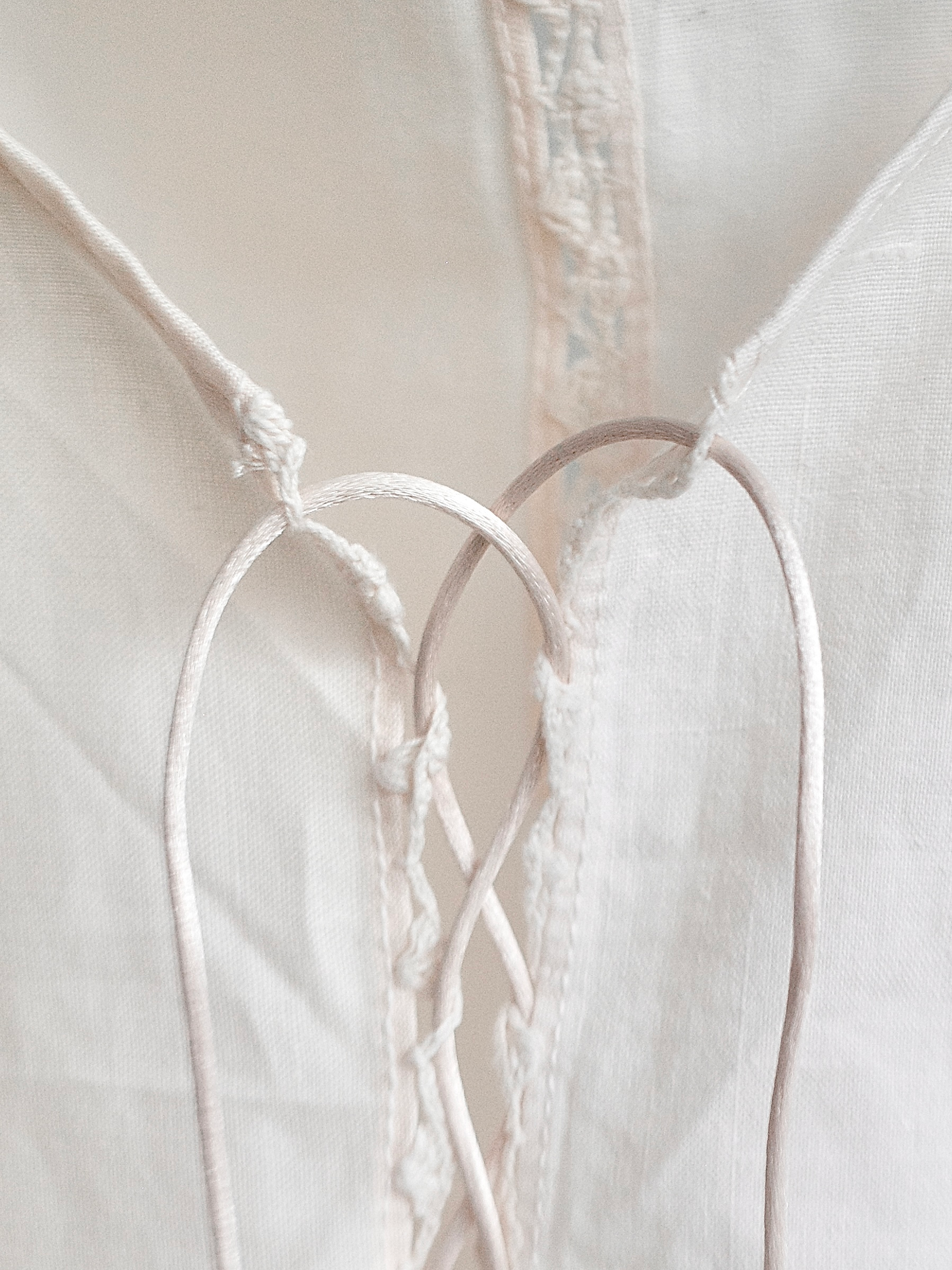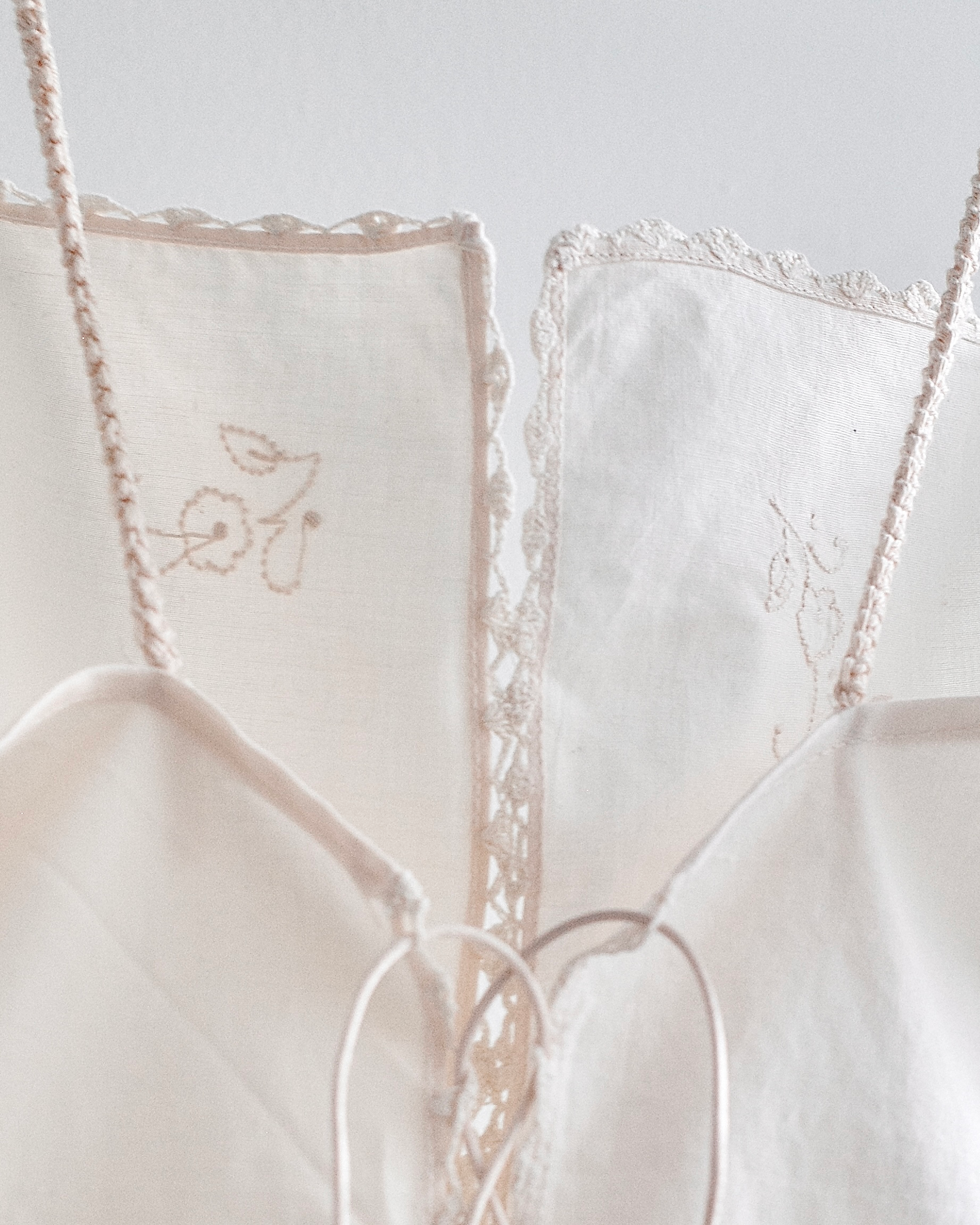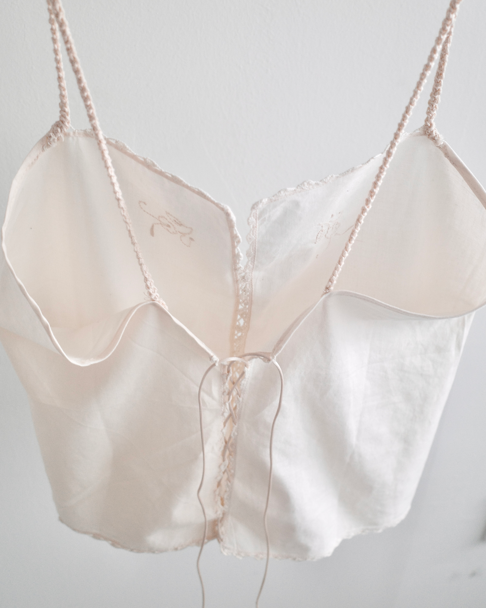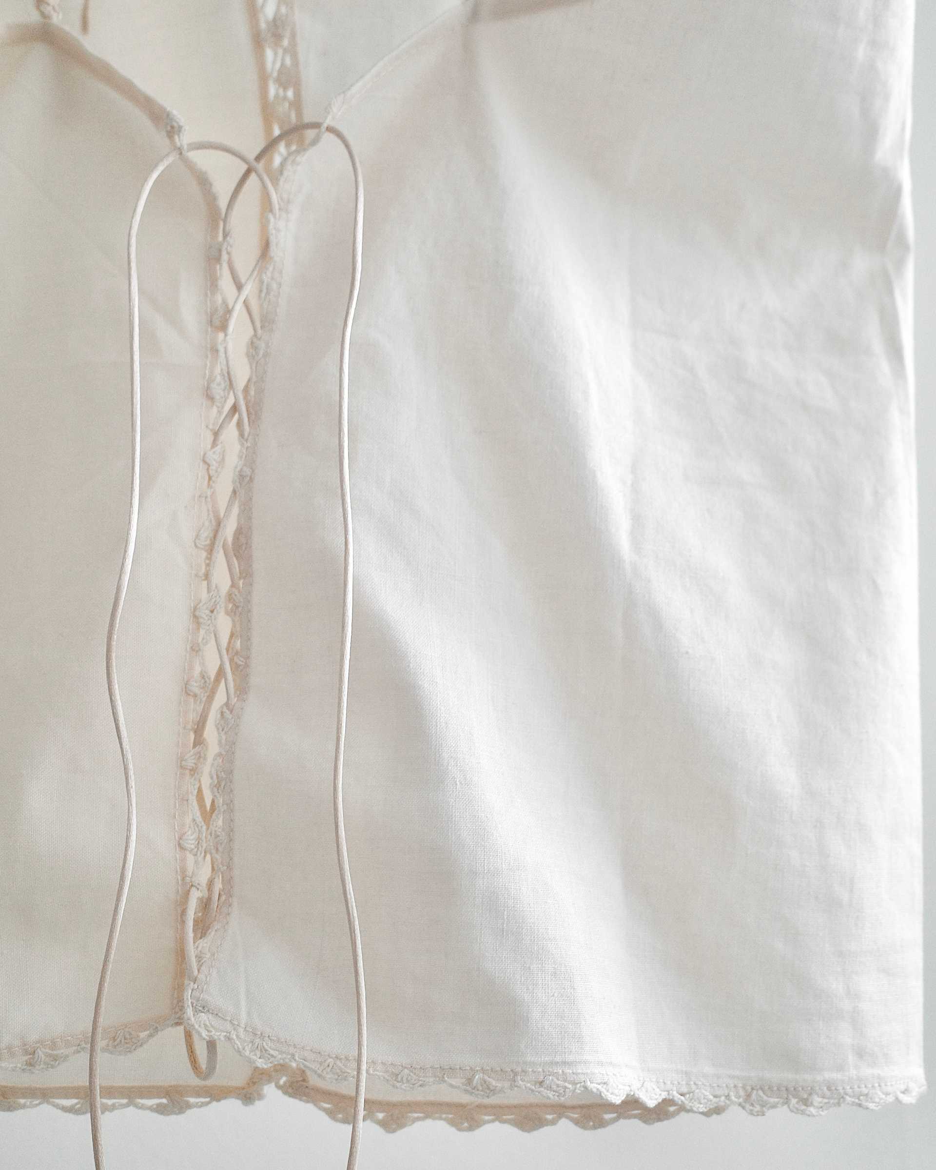 베이지 컬러의 코튼 크로셰 탑입니다. 손으로 수놓은 자수 디테일과 레이스 짜임이 섬세하며, 빈티지한 무드와 함께 자연스러운 실루엣을 연출합니다. 뒷면의 리본 스트랩으로 핏을 조절할 수 있어, 체형에 맞게 착용가능합니다.