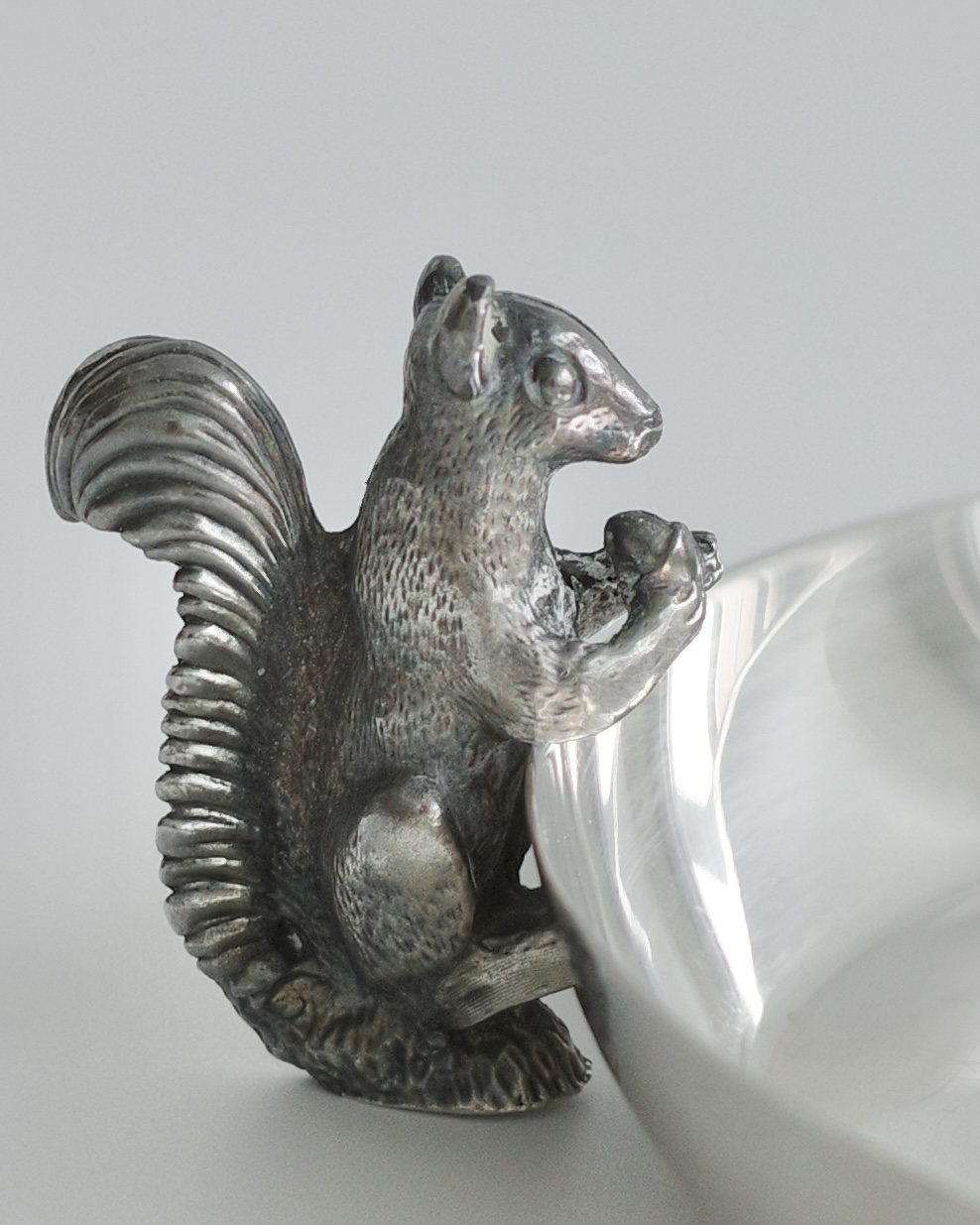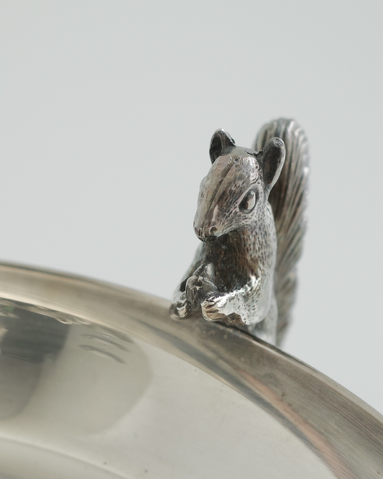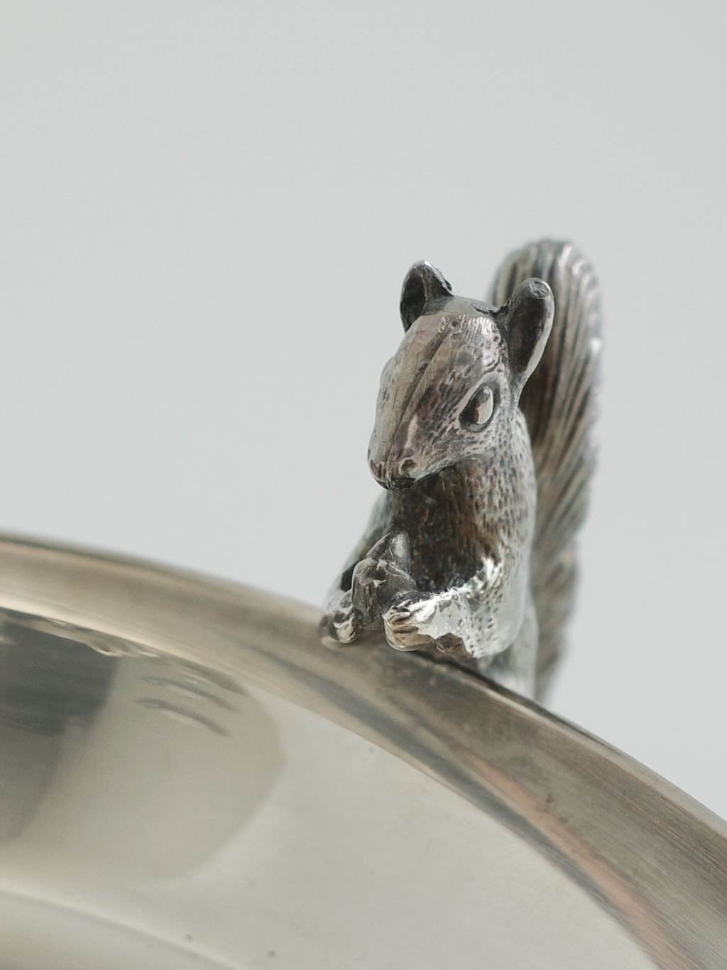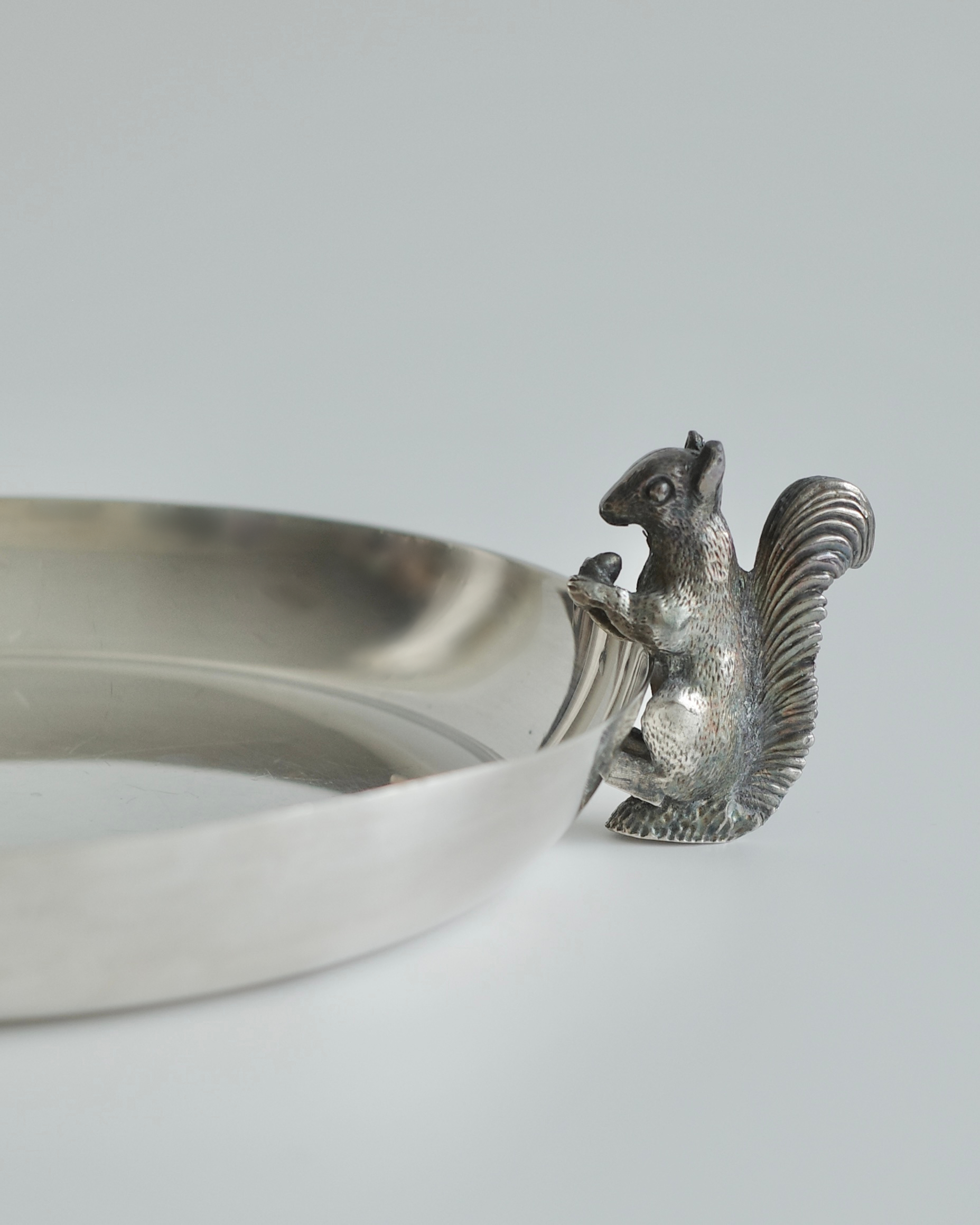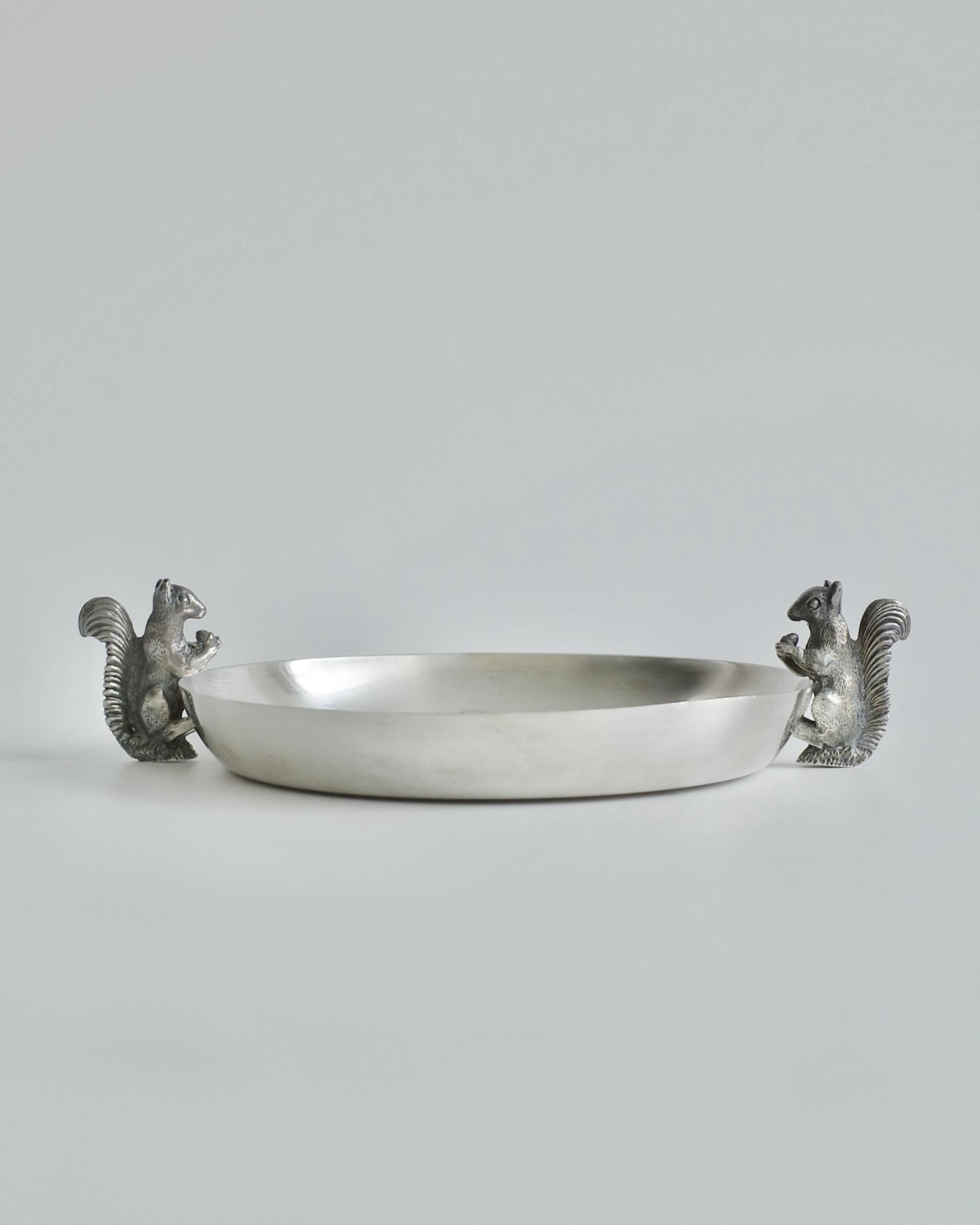 'Alpha Plate' 공법(영국 셰필드 지역에서 개발된 고급 은도금 기술 )으로 완성된 이 디쉬는 ‘The Cutlers Company’(헨리 5세가 왕립 인가한 런던의 금속 공예 조합)의 인증을 받은 영국의 유서 깊은 실버웨어로, 다람쥐 디테일이 살아있는 동물 모티프 디자인은 단 하나뿐인 유니크 피스로서 소장 가치가 높습니다.
