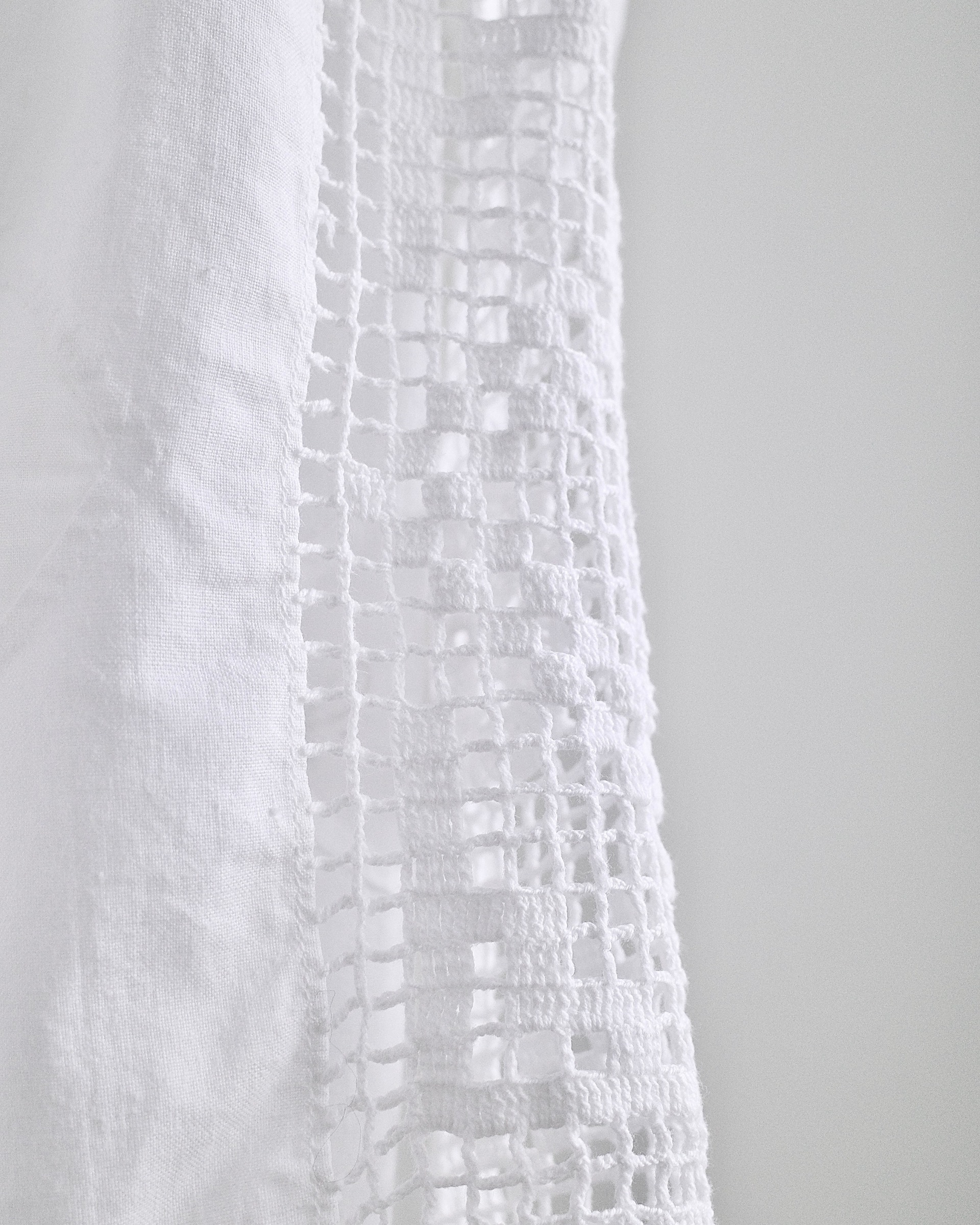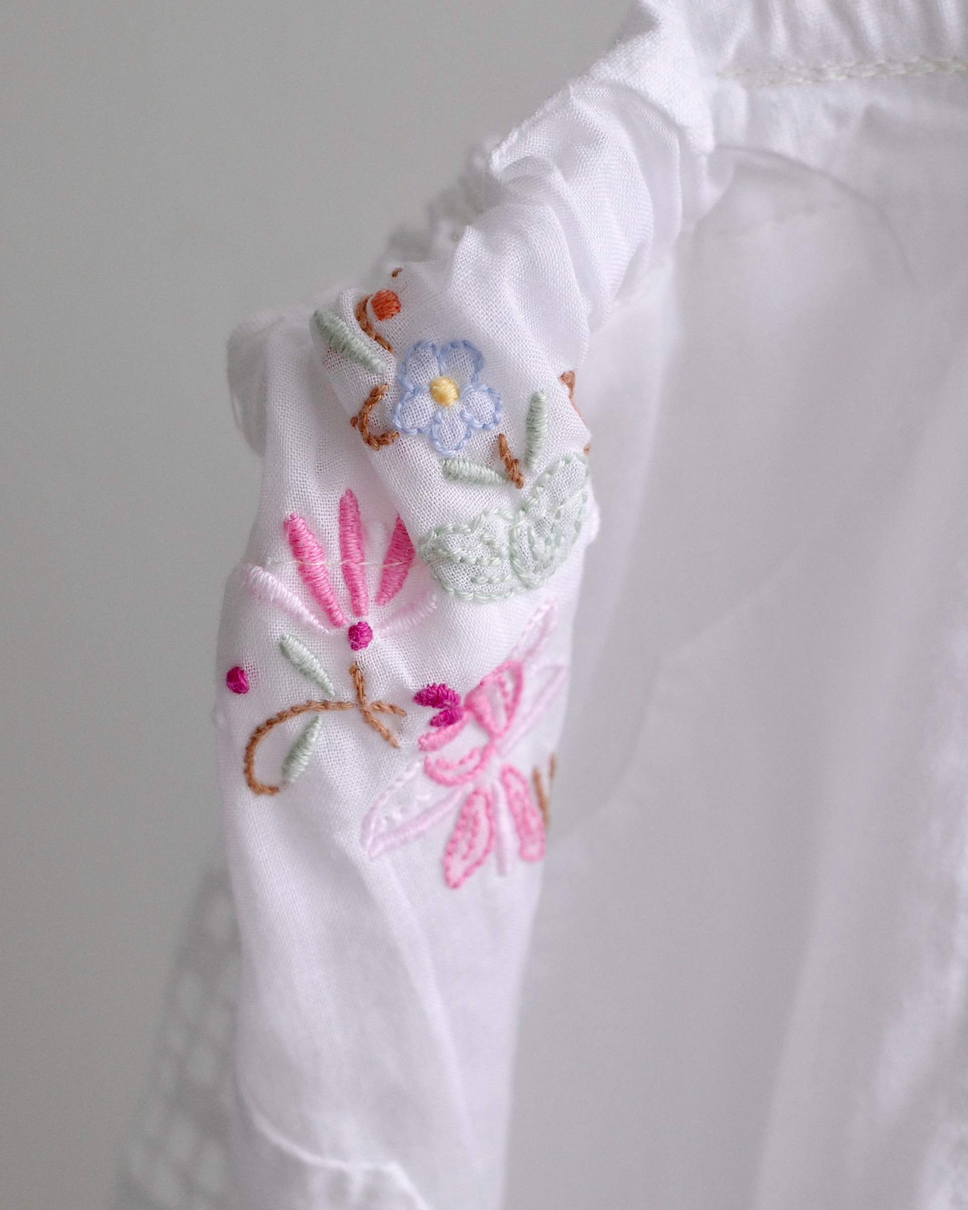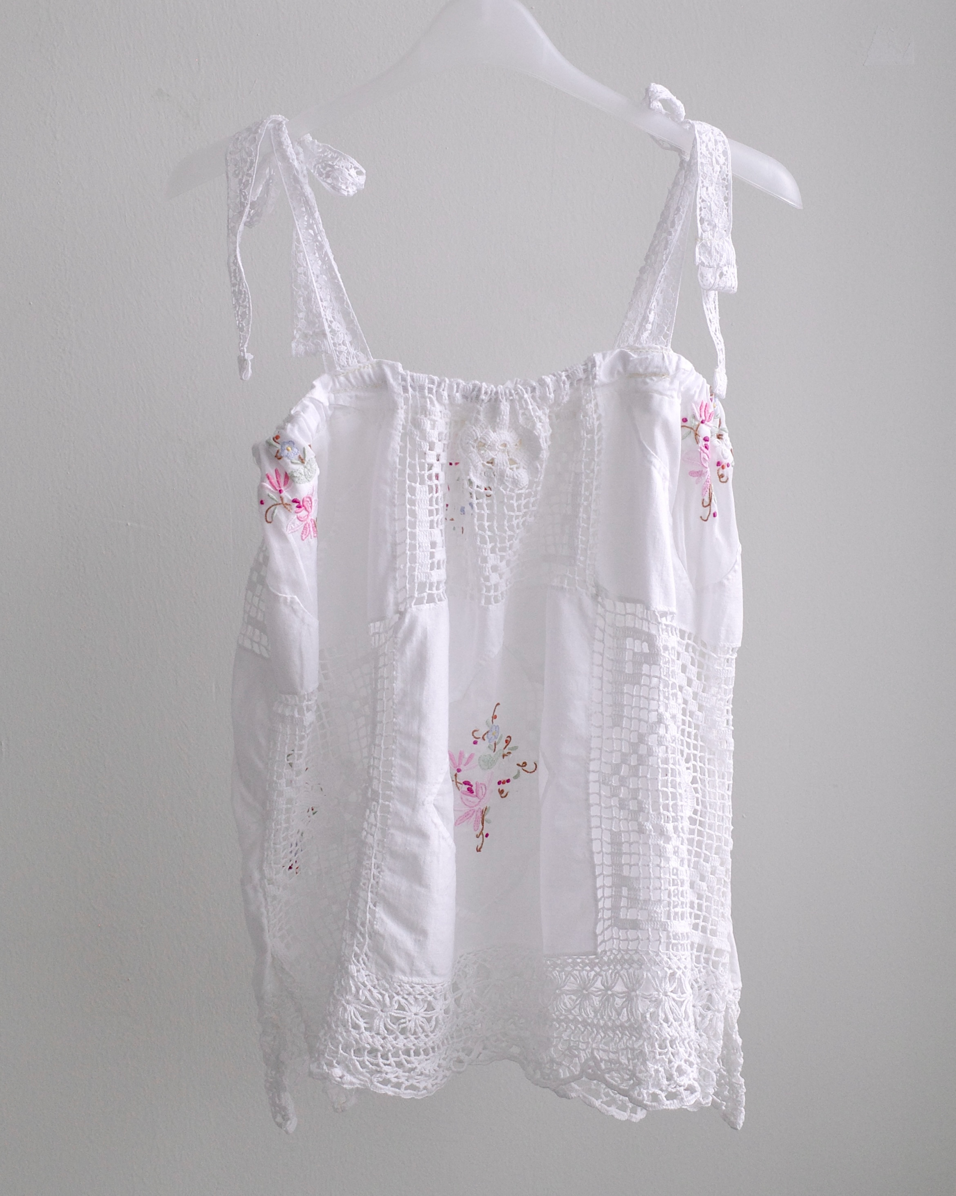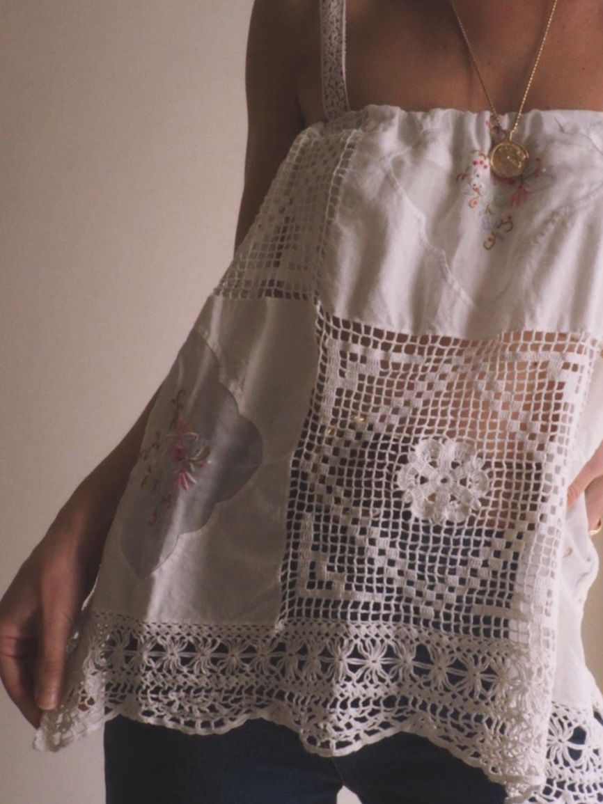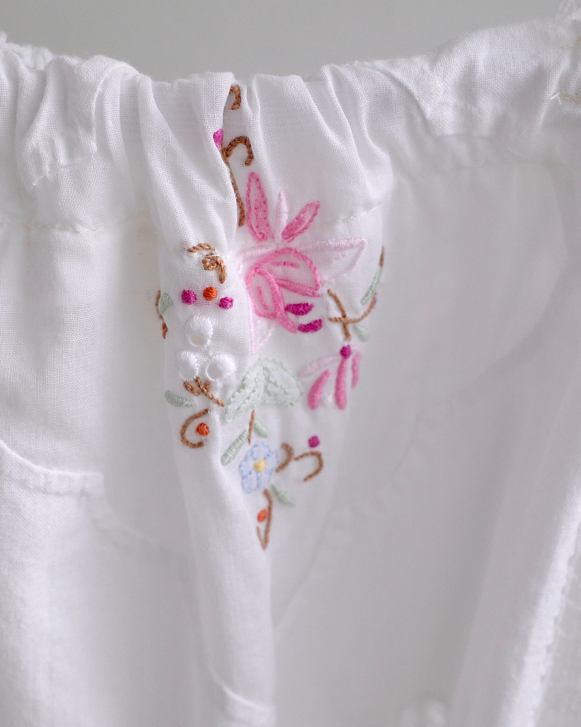 이탈리아 빈티지 자수 코튼과 크로셰 패브릭을 조합해 완성한 제품입니다. 섬세한 플라워 자수와 촘촘한 크로셰 디테일이 조화를 이루며, 고급스럽고 유니크한 빈티지 무드를 선사합니다. 어깨끈은 크로셰 스트랩으로 길이 조절 가능하며, 가슴라인은 전체 밴딩 처리되어 편안하게 착용하실 수 있습니다. 헴라인을 따라 이어지는 와이드 크로셰 디테일이 룩에 풍성한 볼륨감과 부드러운 실루엣을 더해줍니다.