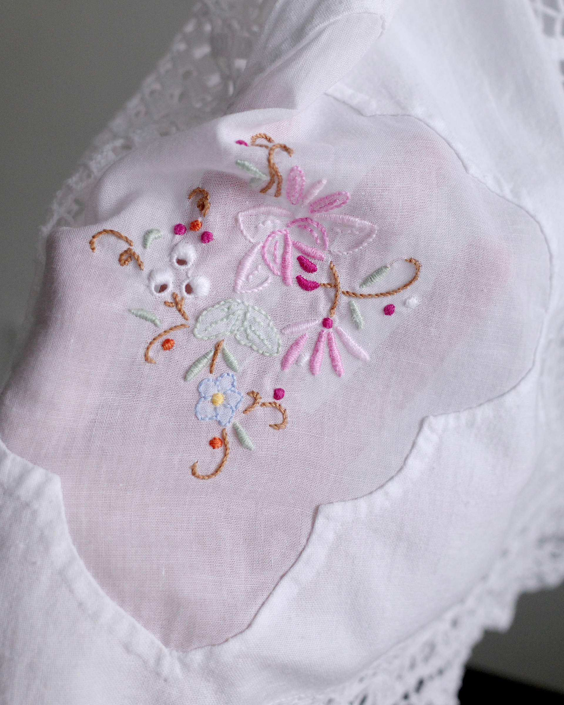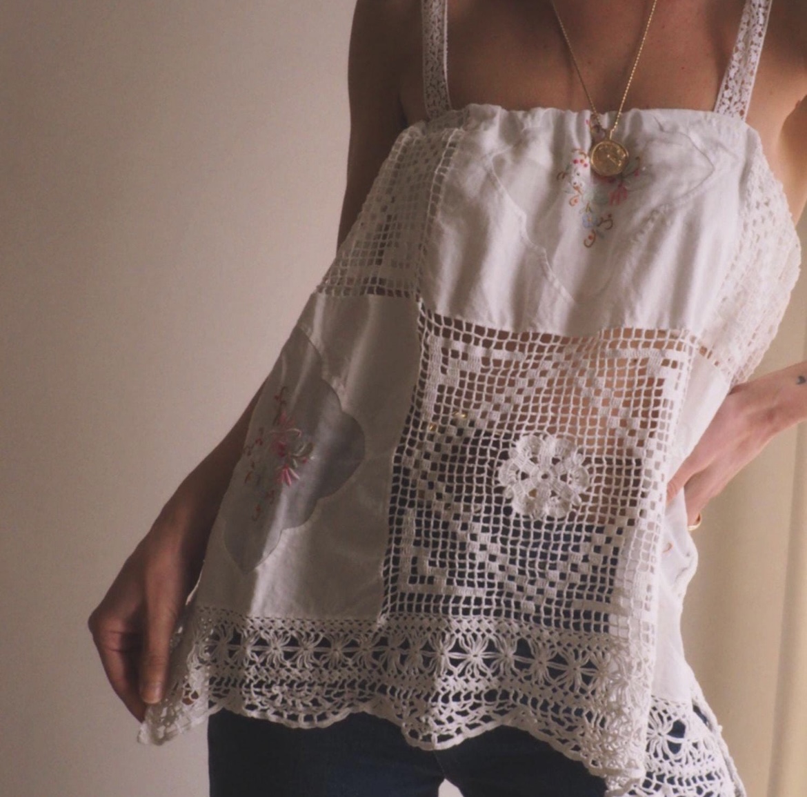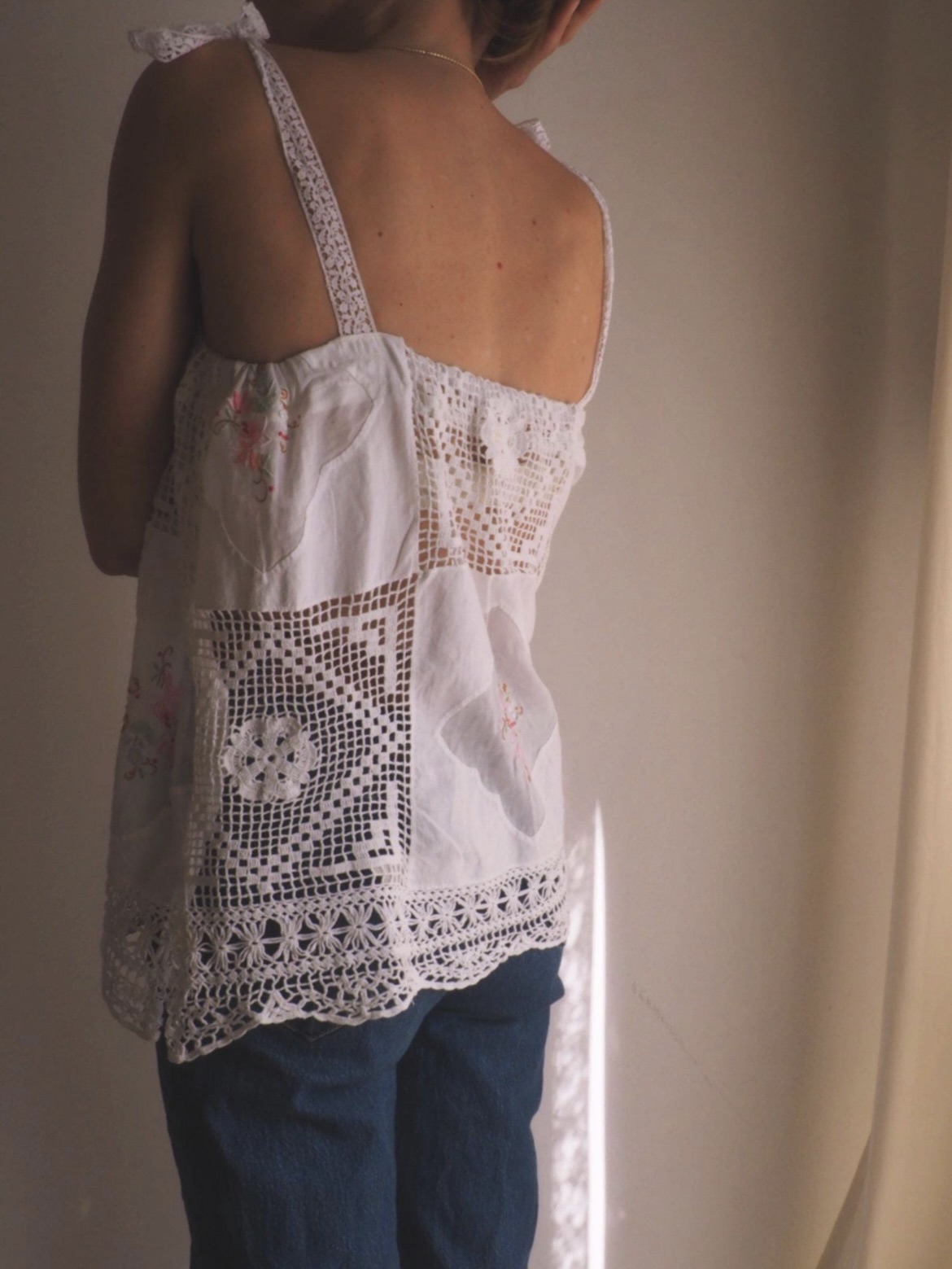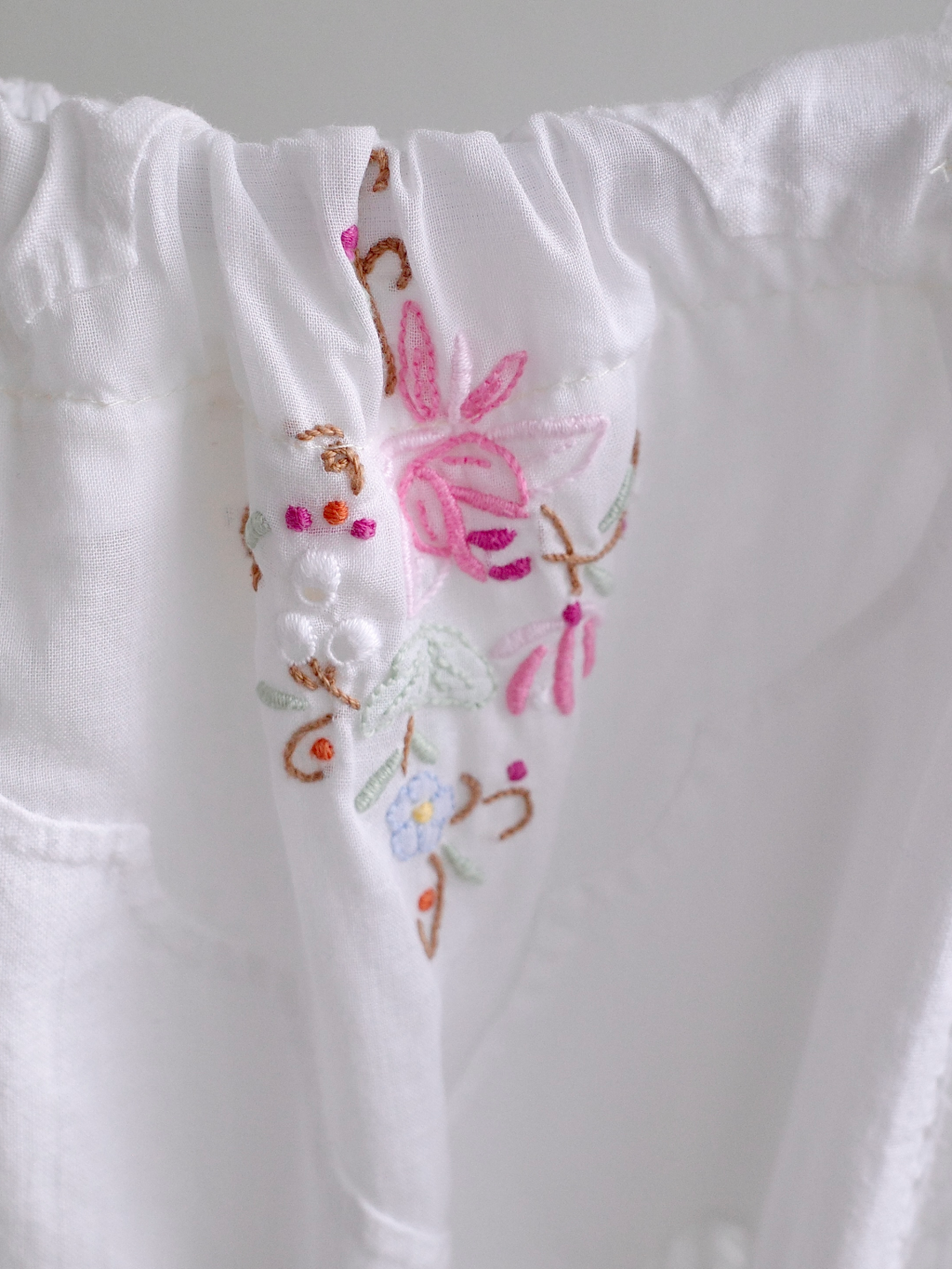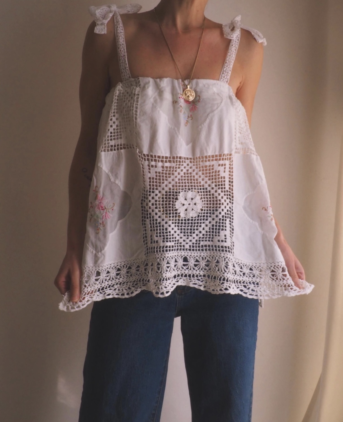 이탈리아 빈티지 자수 코튼과 크로셰 패브릭을 조합해 완성한 제품입니다. 섬세한 플라워 자수와 촘촘한 크로셰 디테일이 조화를 이루며, 고급스럽고 유니크한 빈티지 무드를 선사합니다. 어깨끈은 크로셰 스트랩으로 길이 조절 가능하며, 가슴라인은 전체 밴딩 처리되어 편안하게 착용하실 수 있습니다. 헴라인을 따라 이어지는 와이드 크로셰 디테일이 룩에 풍성한 볼륨감과 부드러운 실루엣을 더해줍니다.