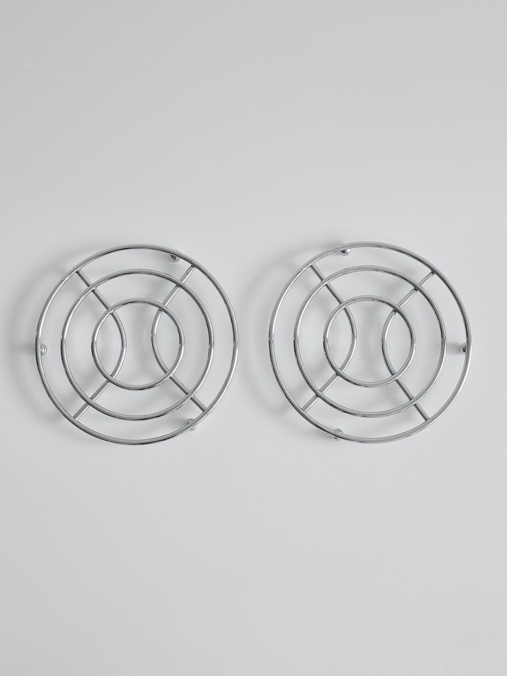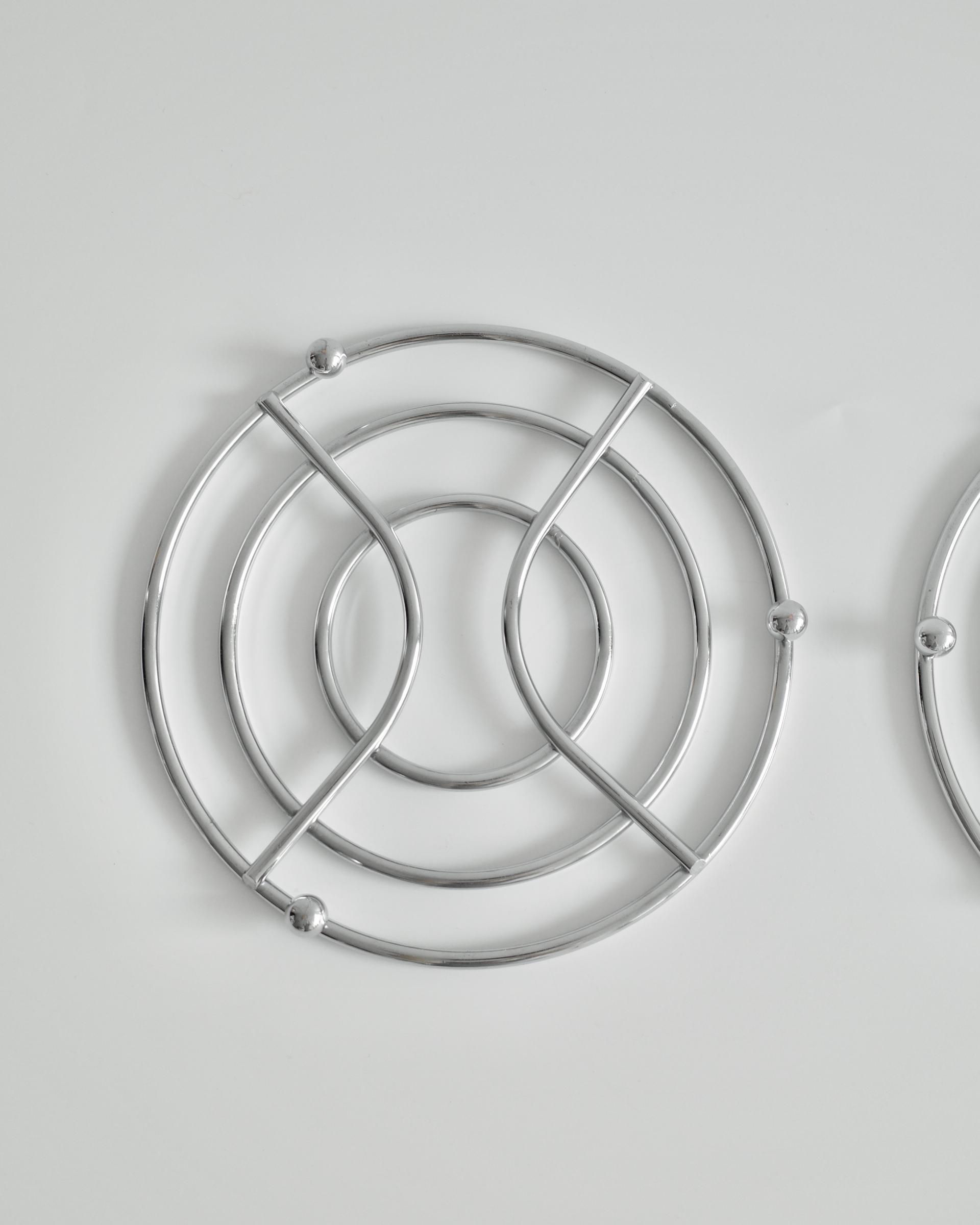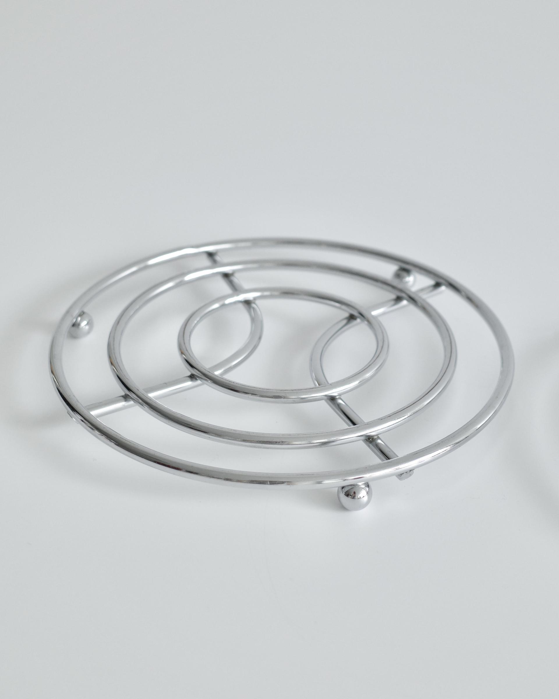 1980년대에 제작된 빈티지 크롬 냄비 받침입니다.