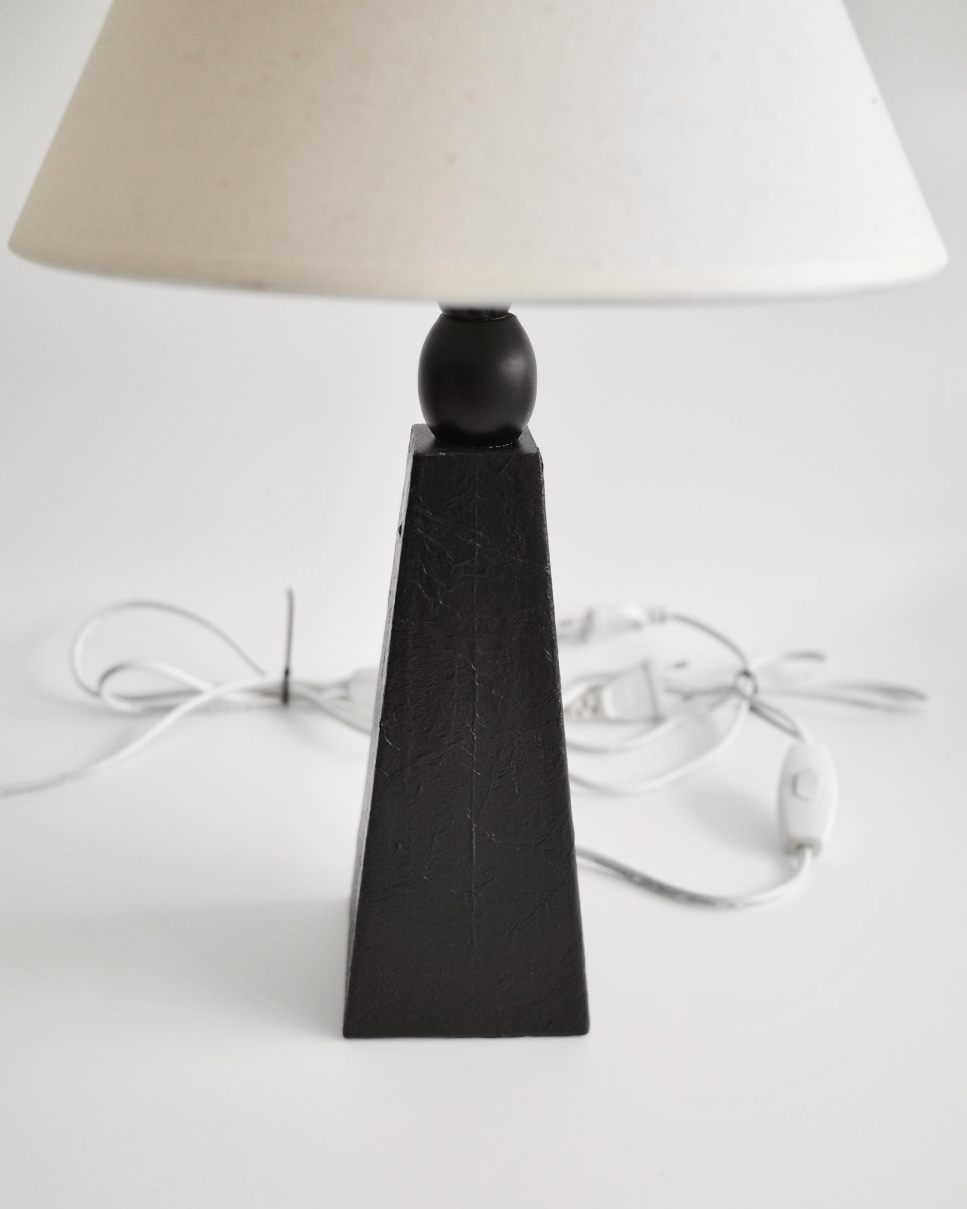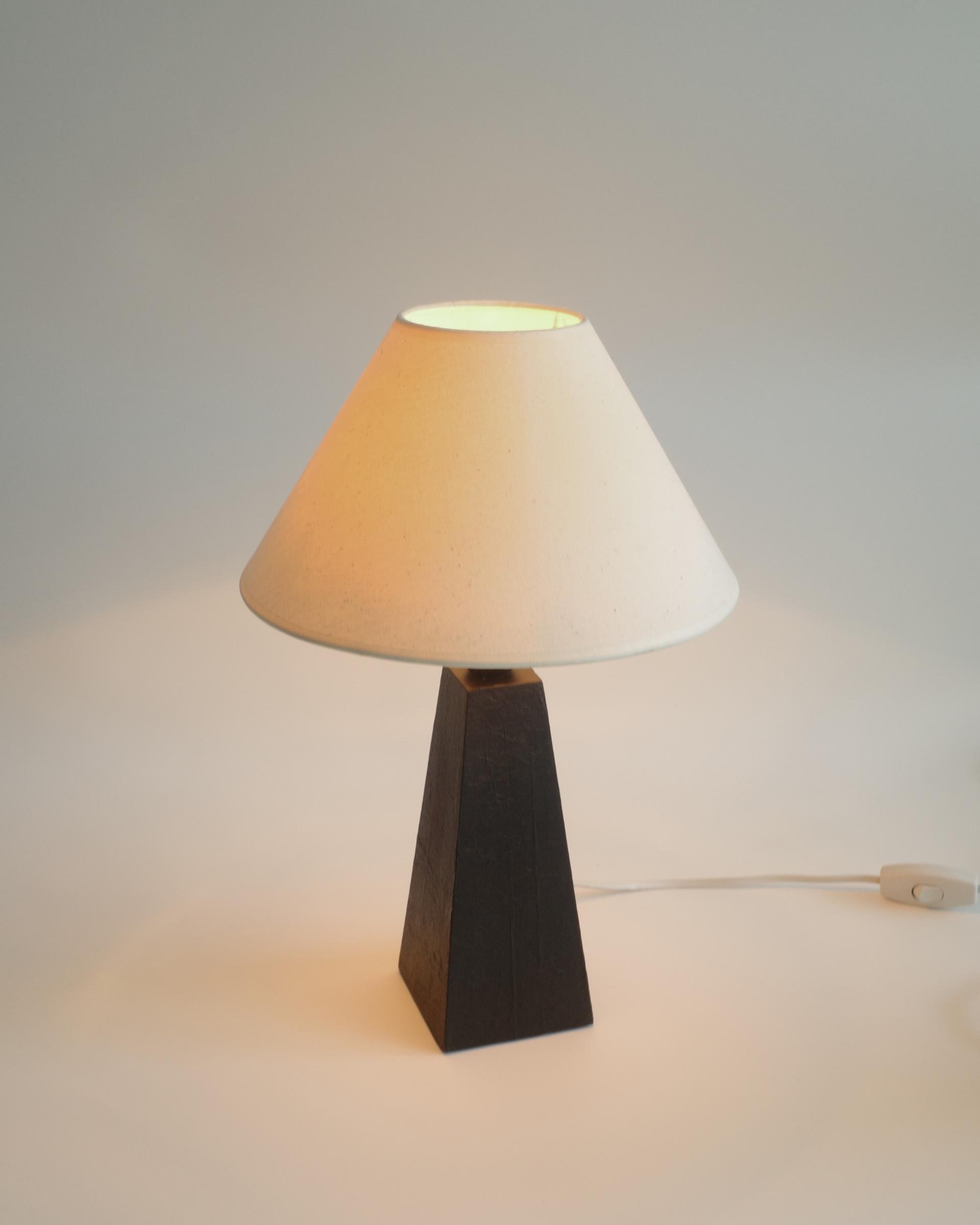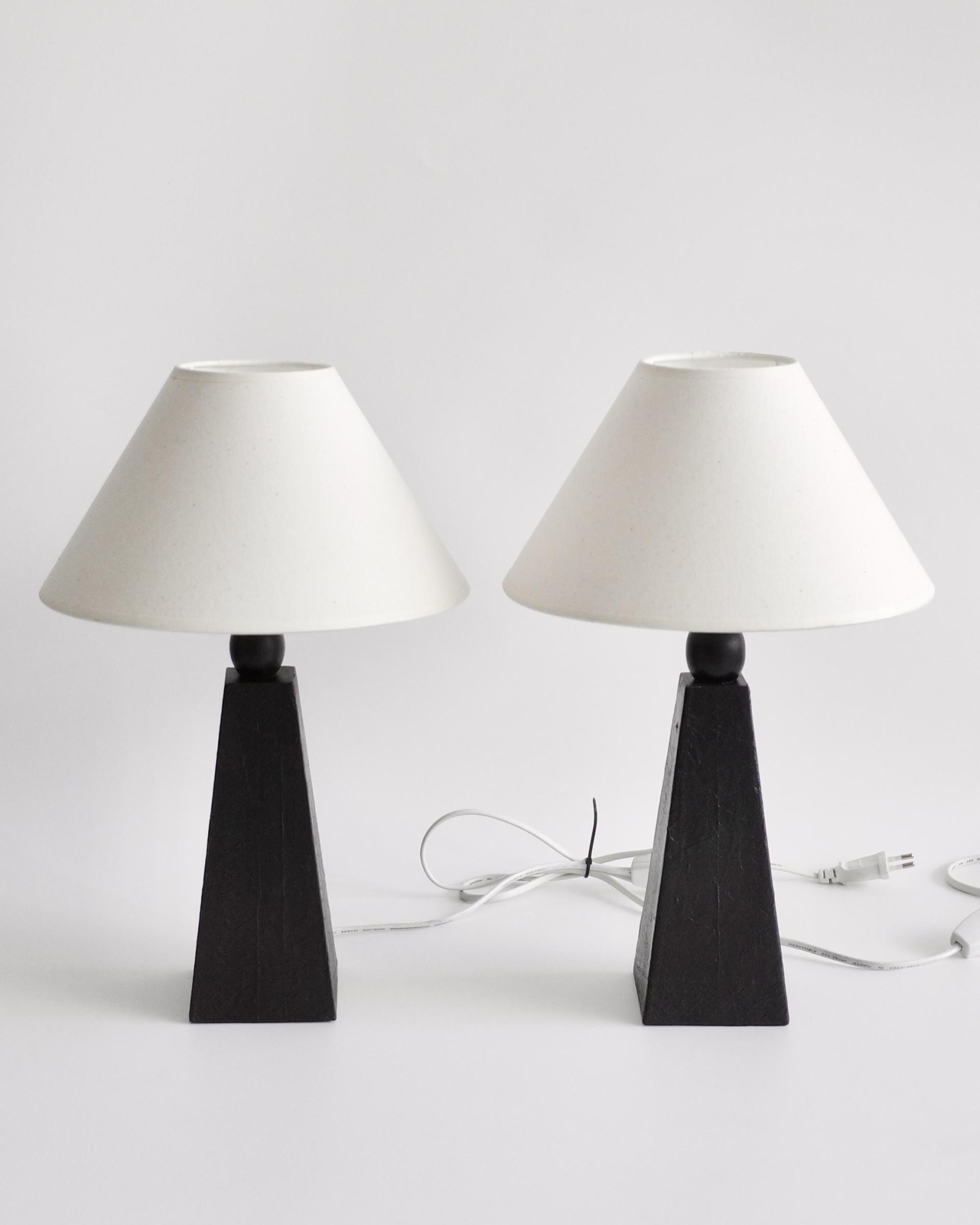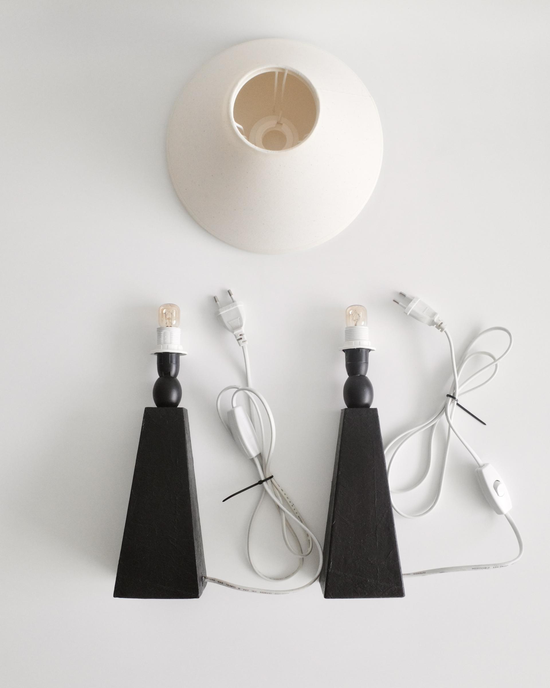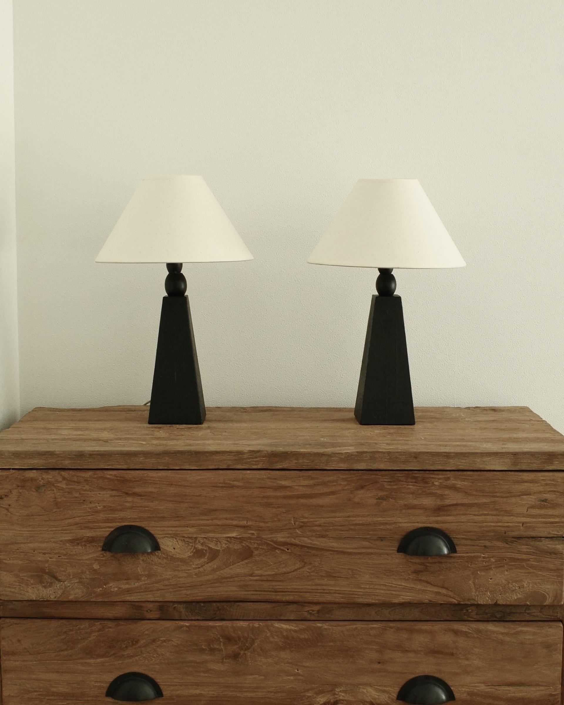 암스테르담에서 소싱된 제품으로, 블랙 래커 우드 베이스와 새로운 코튼 쉐이드가 조화를 이루며 절제된 조형미를 보여줍니다.