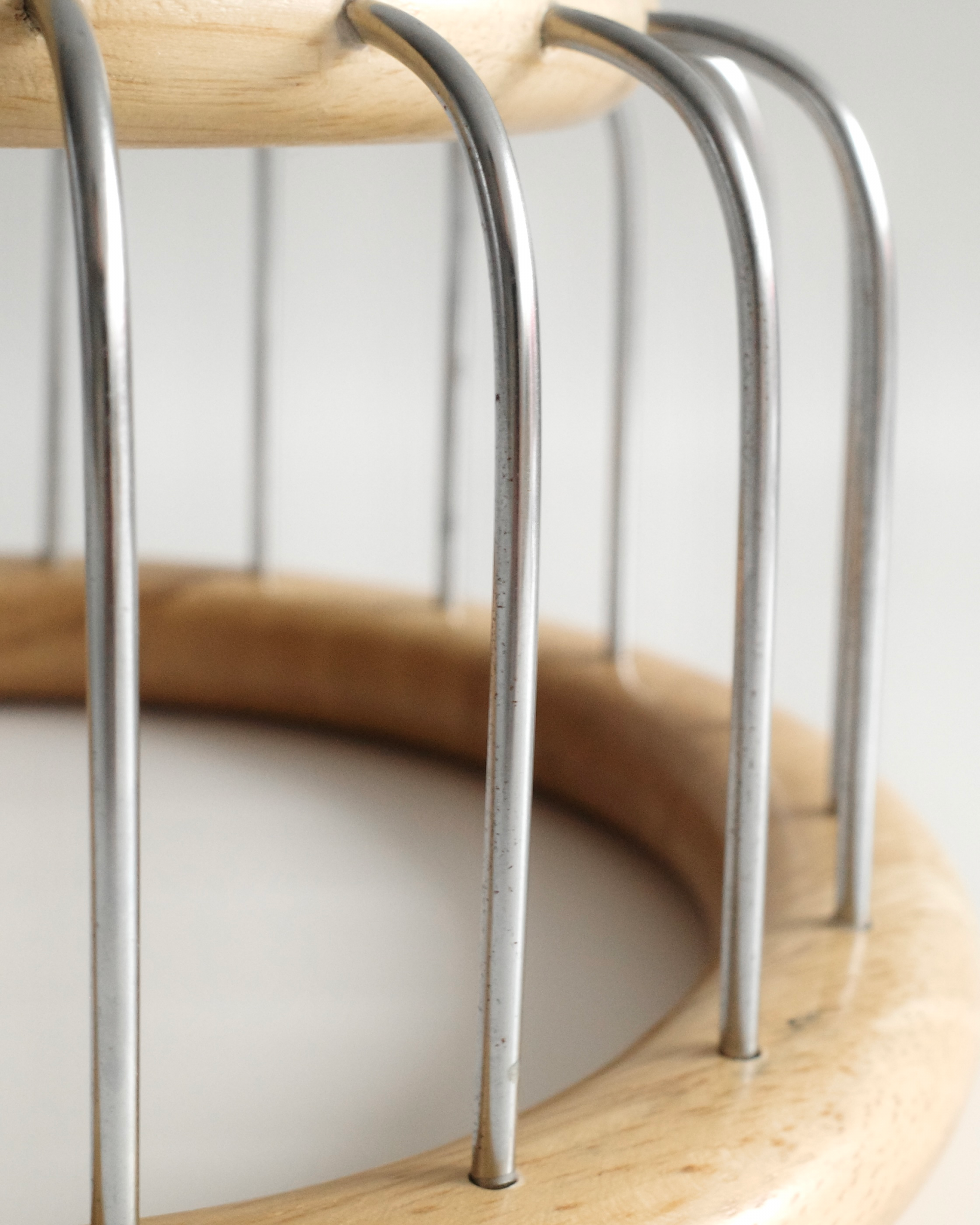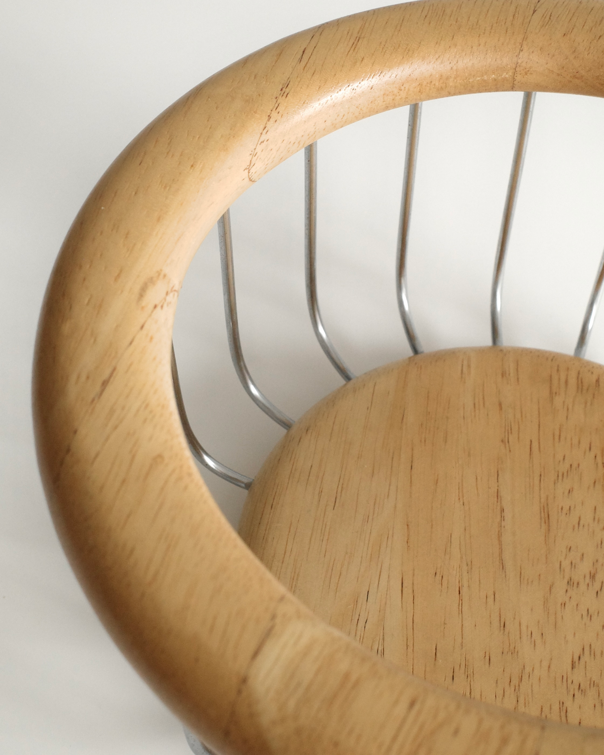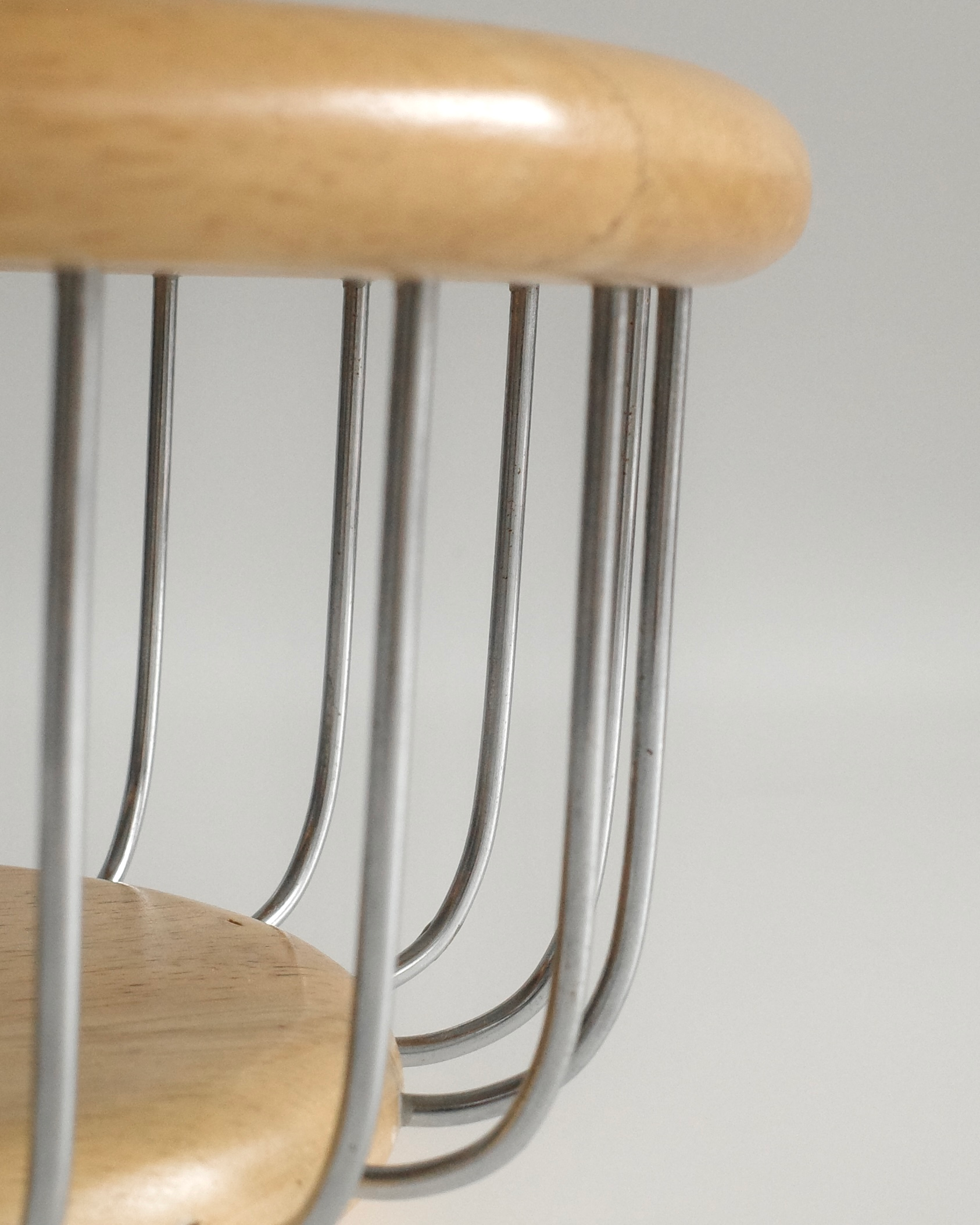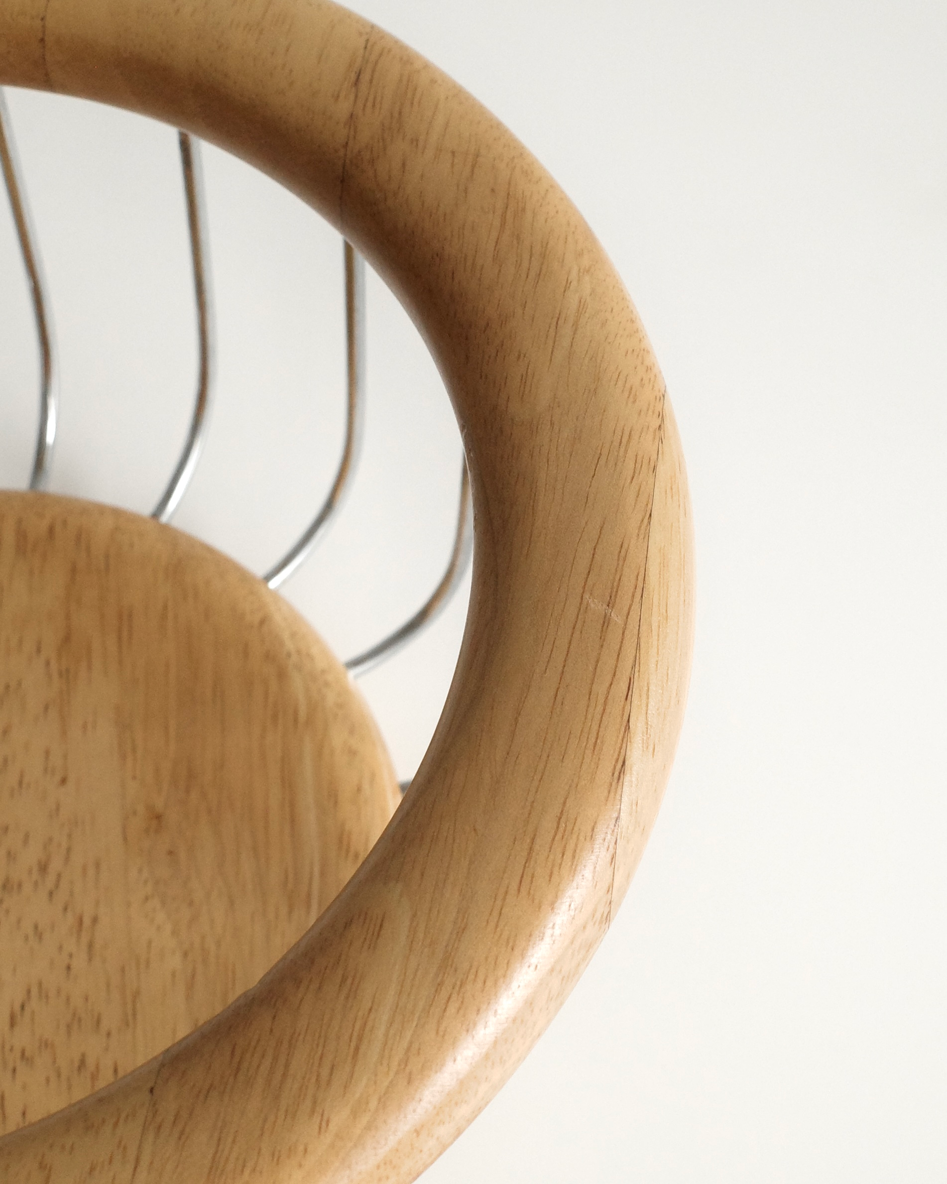 네덜란드에서 소싱된 제품으로, 크롬 와이어와 블론드 오크의 조화가 돋보이며 절제된 미니멀리즘과 따뜻한 질감을 동시에 보여줍니다.