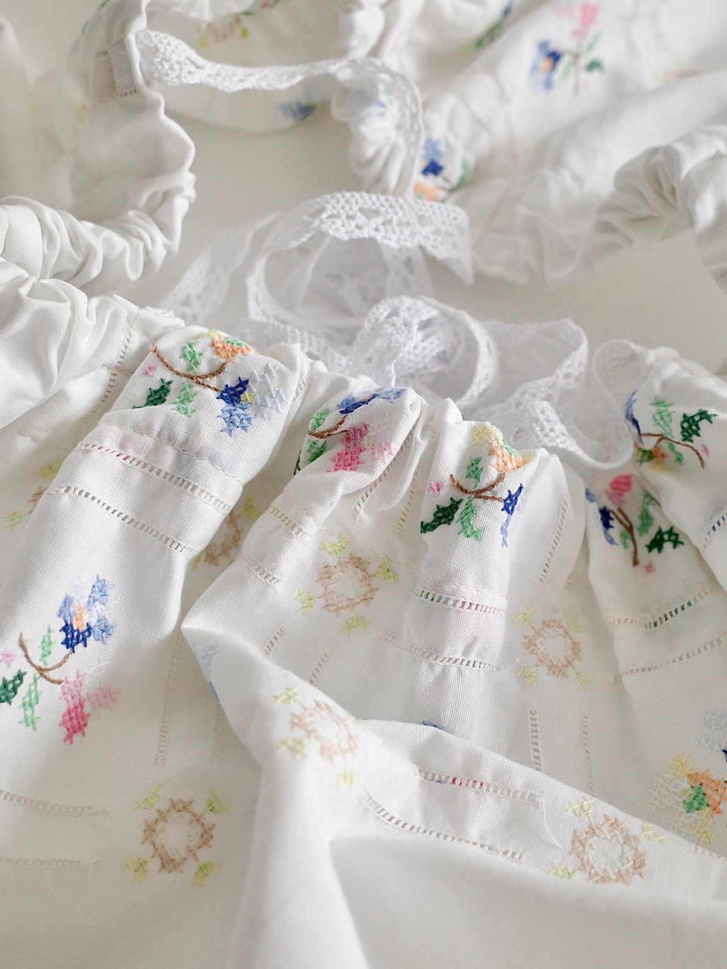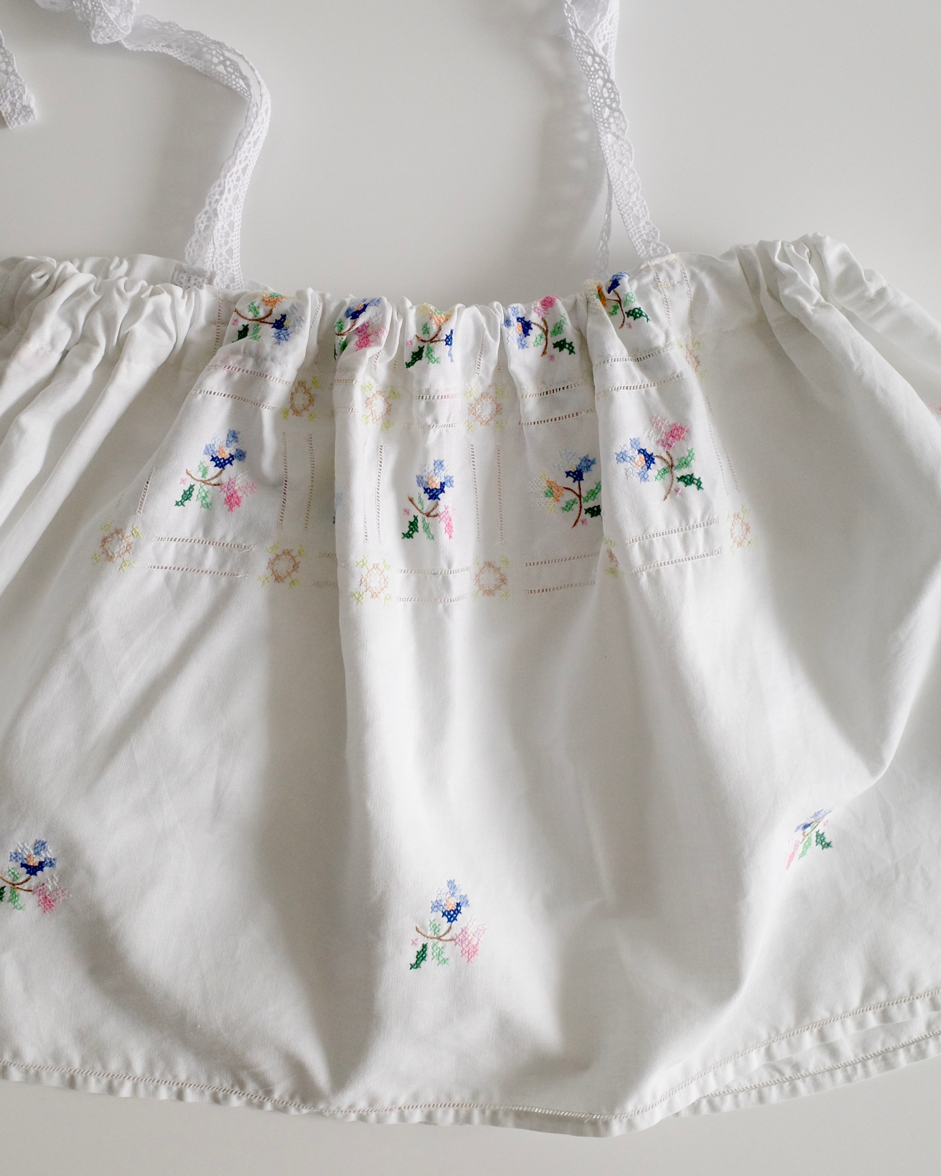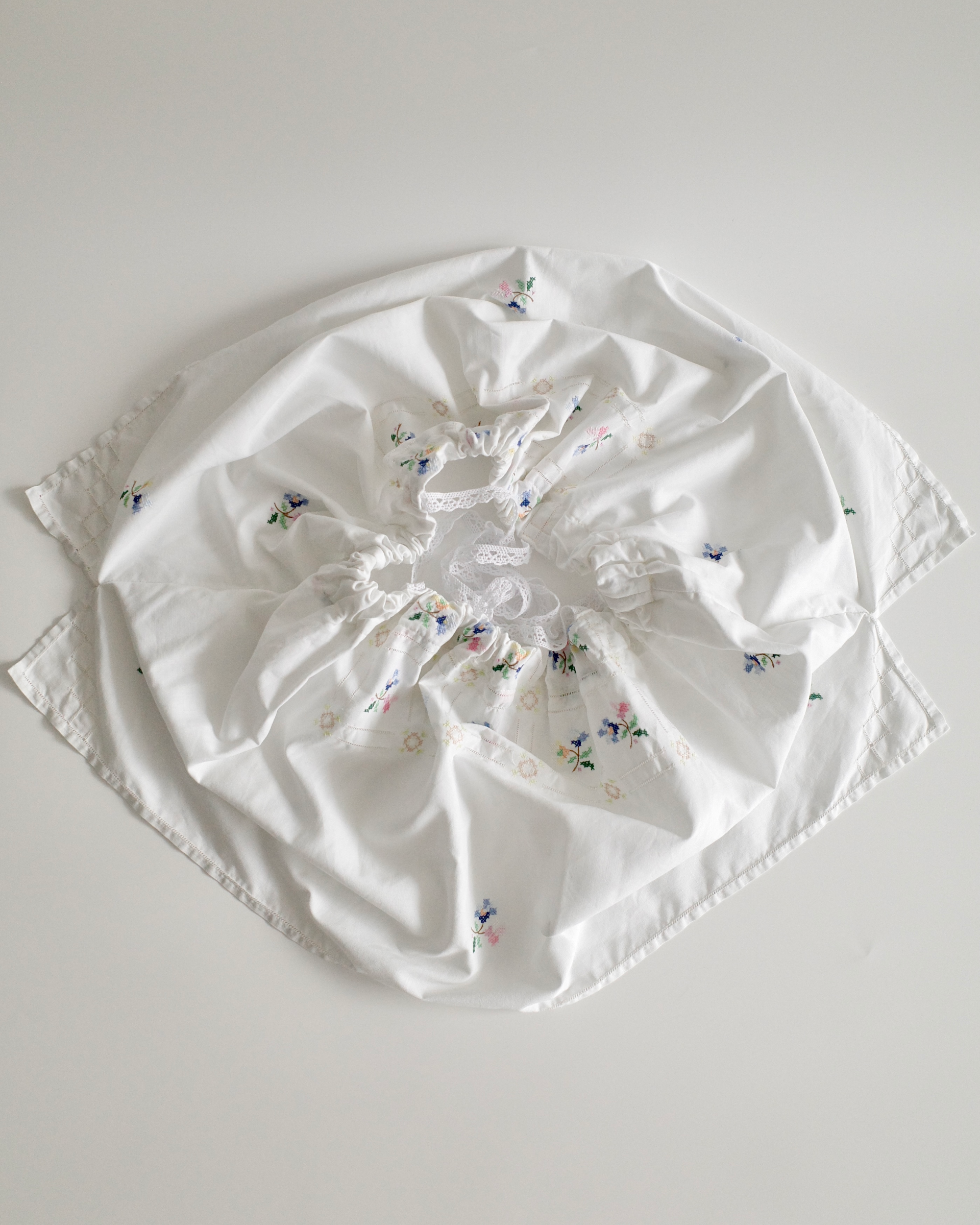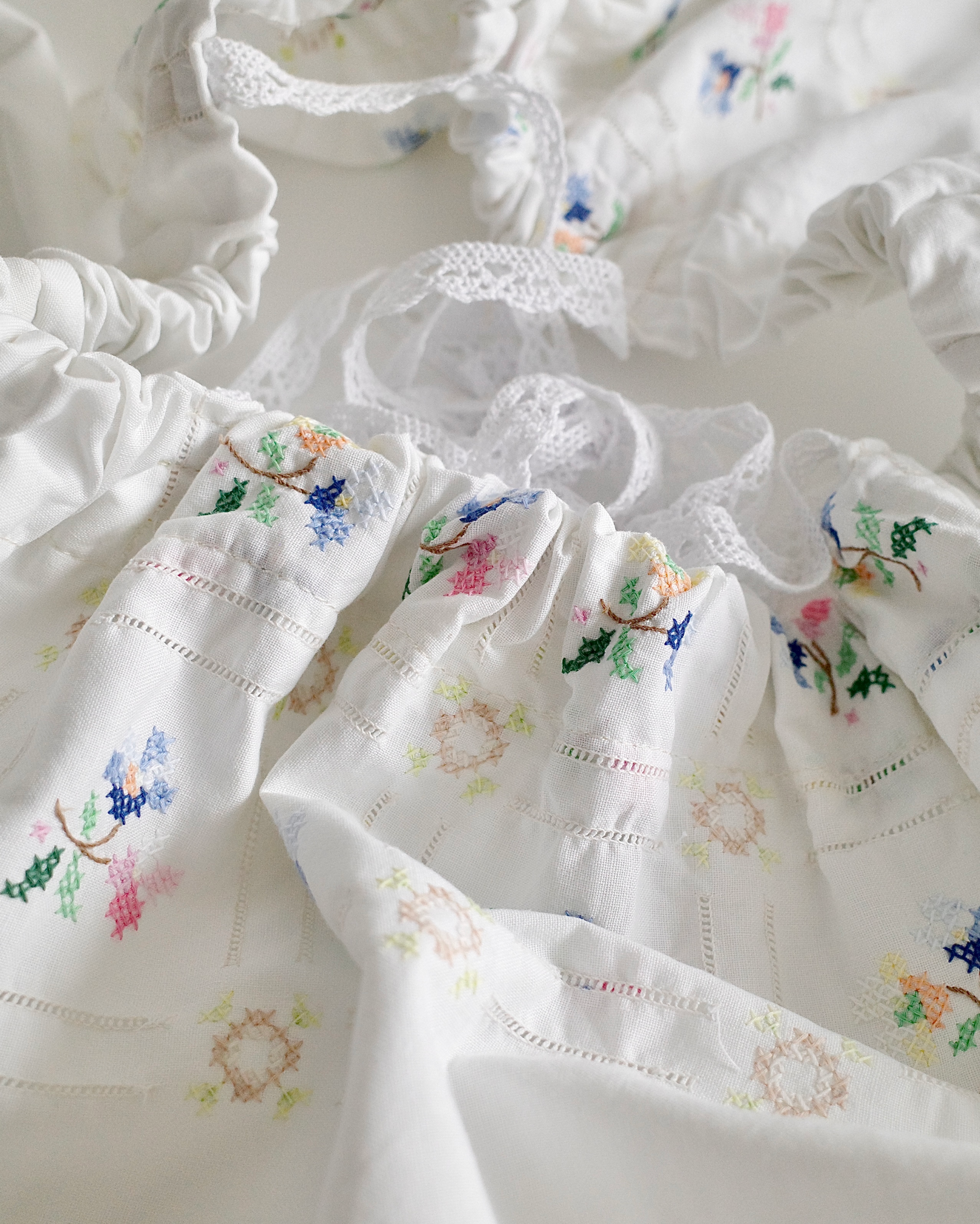 이탈리아 빈티지 코튼 원단 위에 파스텔 플로럴 모티프를 하나하나 섬세하게 수작업 자수로 수놓아 단 하나뿐인 매력을 지닌 탑입니다.