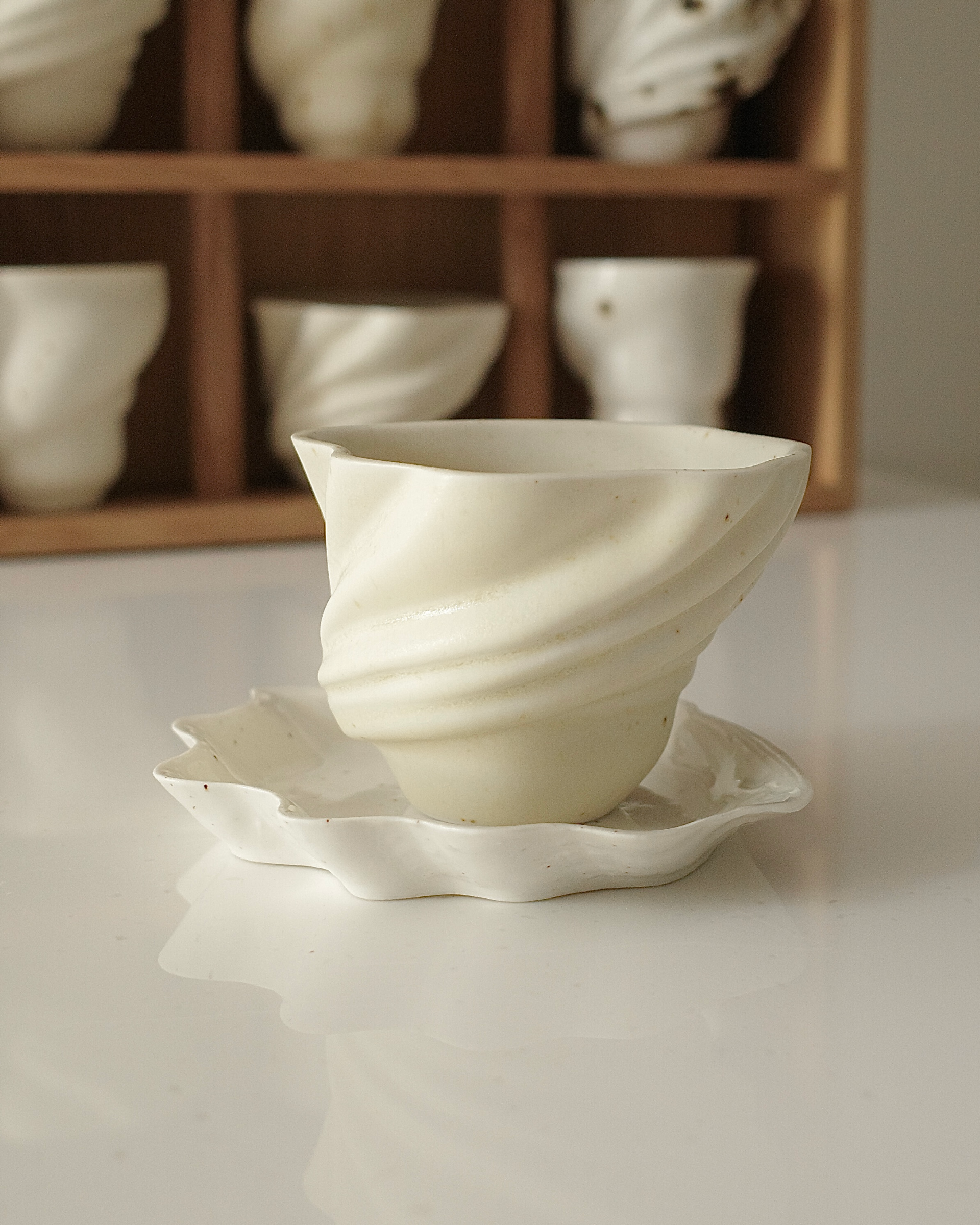 스바네 컵의 옆면을 따라 흐르는 곡선 실루엣은 백조가 날개를 펼치는 순간을 모티브로 디자인되었습니다.