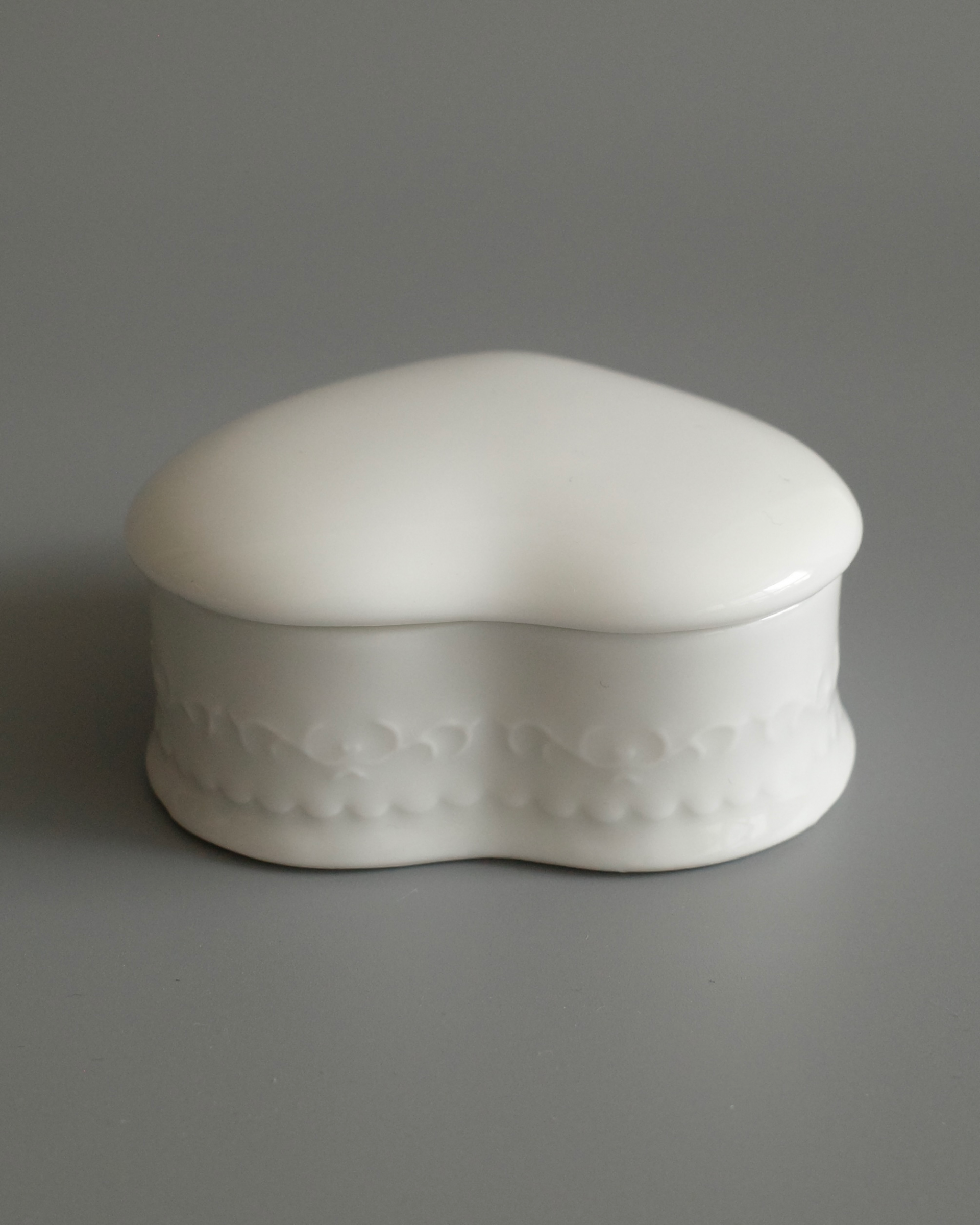 1970년대 독일에서 제작된 하트 쉐이프의 포슬린 보석함입니다.