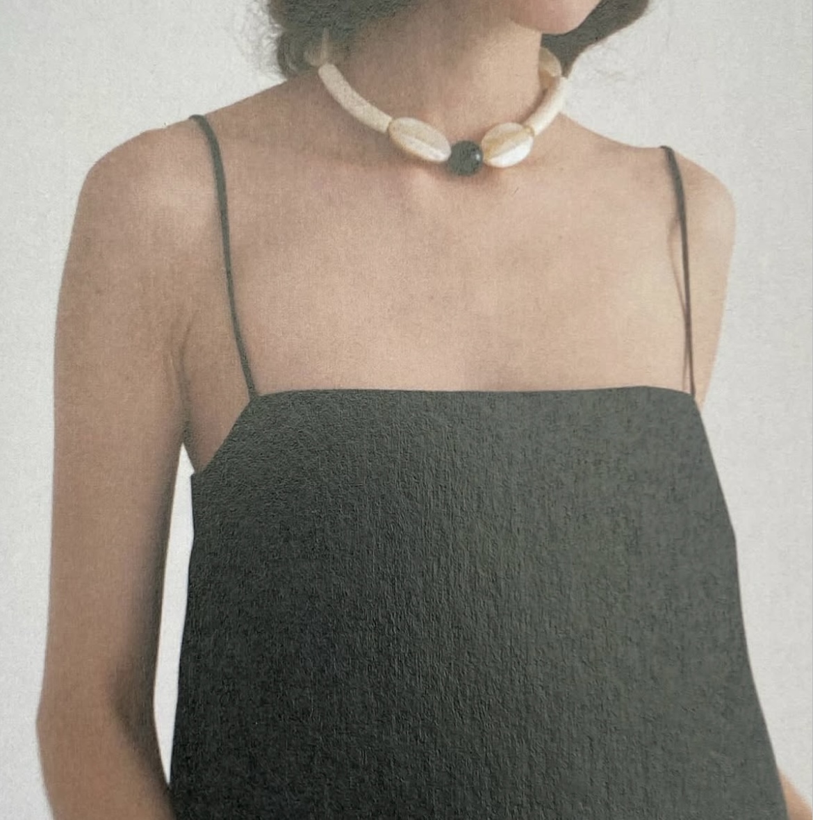 로사리오(Rosario) 네크리스는 오닉스, 쉘, 우드 비드로 제작된 리미티드 에디션 주얼리입니다.