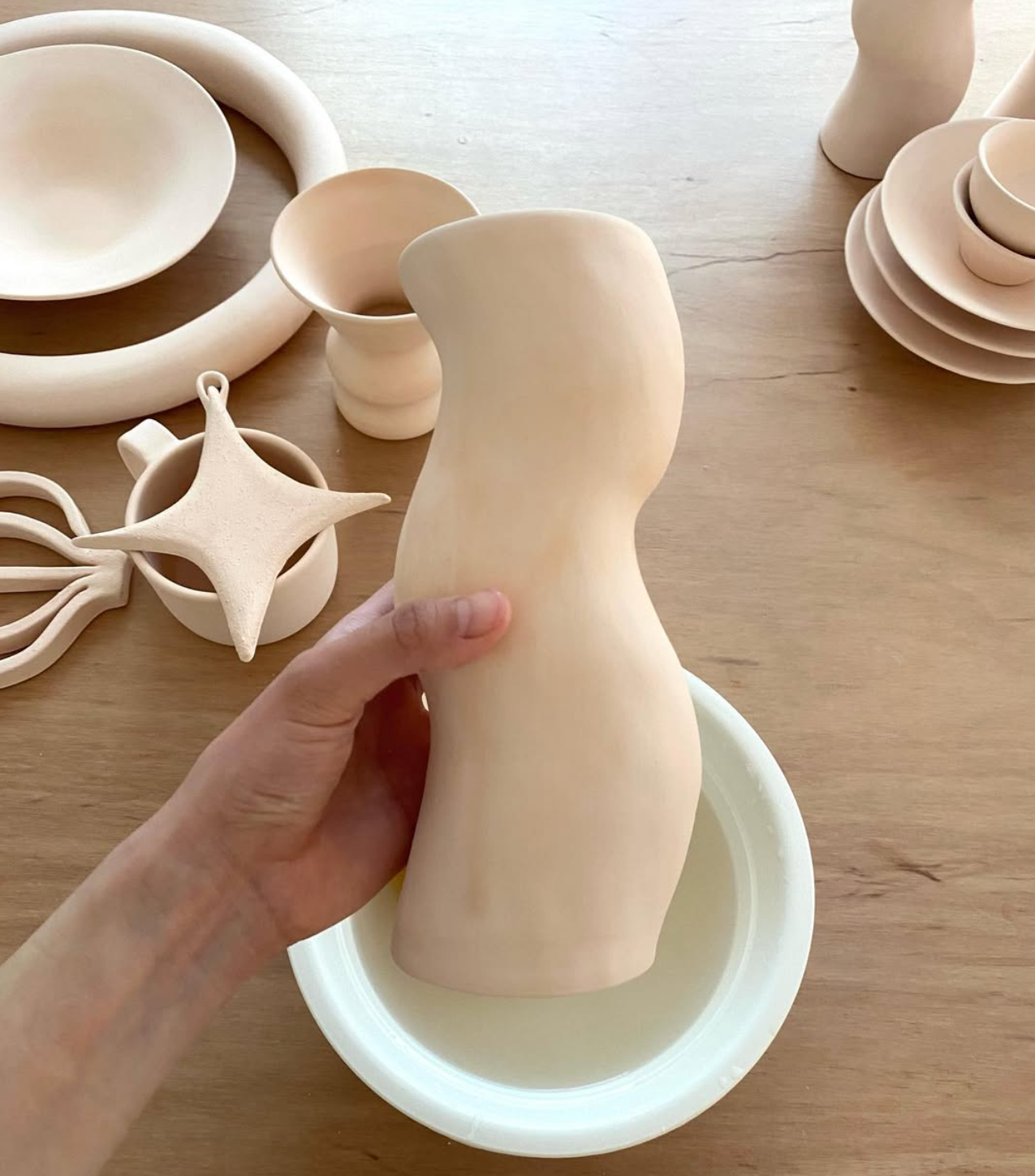 흙을 한 줄씩 정성스럽게 쌓아 올려 완성된 이 오브제는 손으로 빚은 흔적이 고스란히 남아 있어 자연스러운 곡선과 미세한 표면의 굴곡이 돋보입니다.