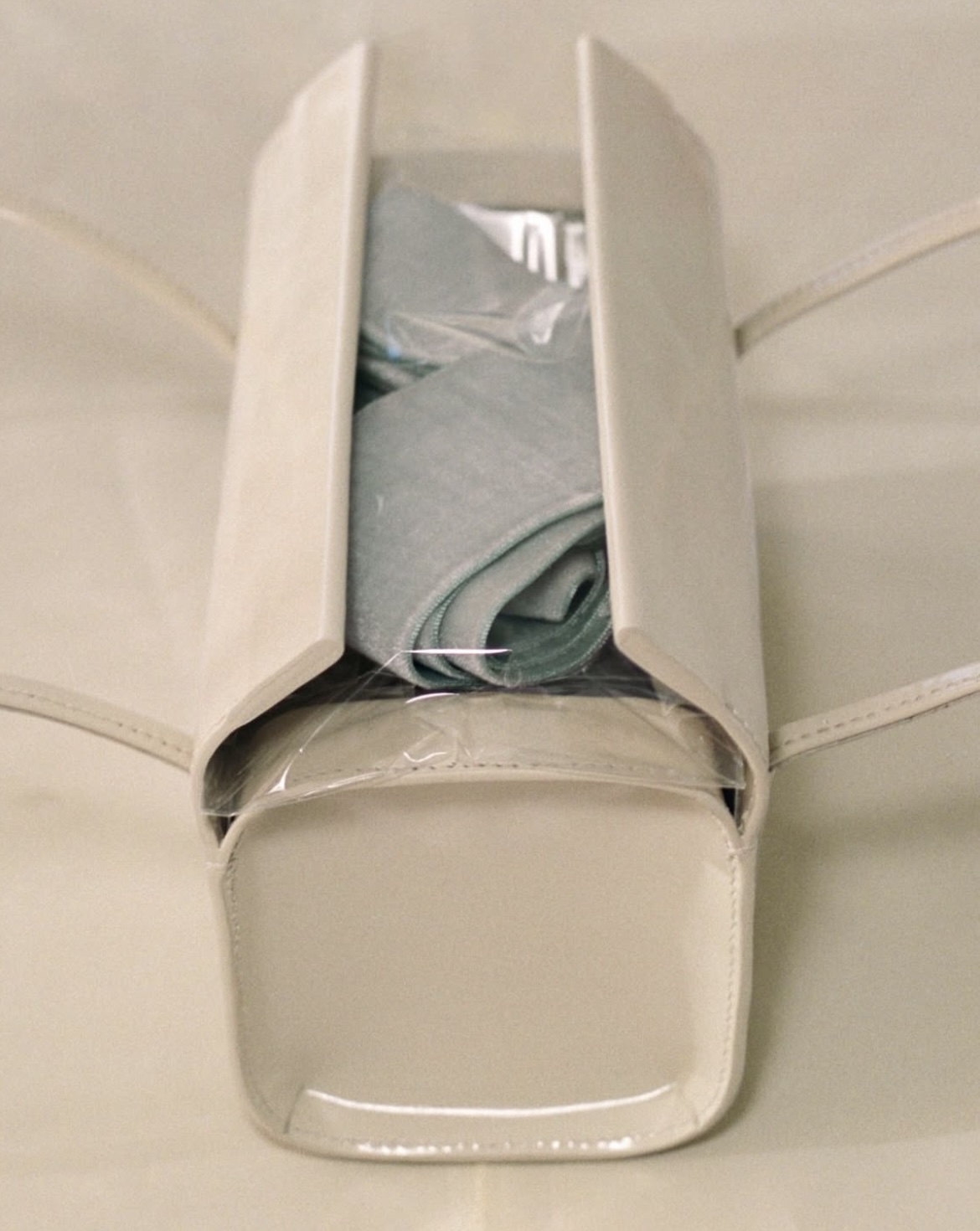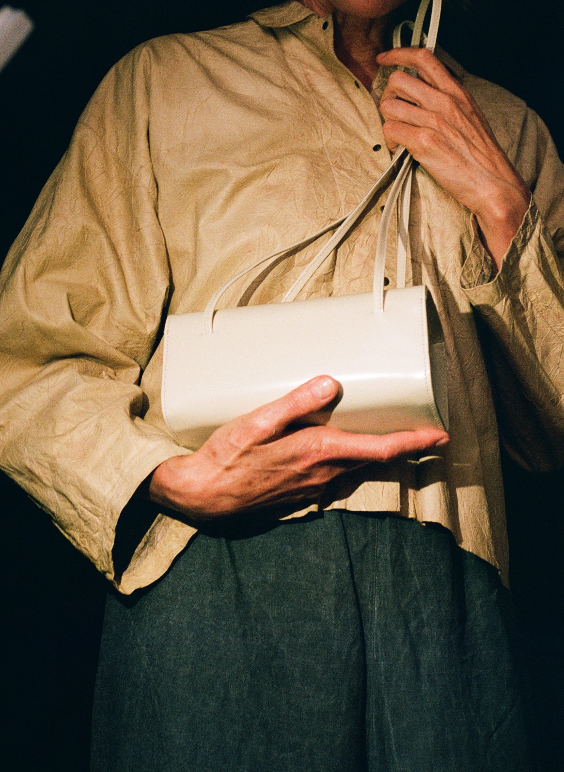 갓 구워낸 식빵의 형태에서 영감을 얻은 미니 박스 백입니다.