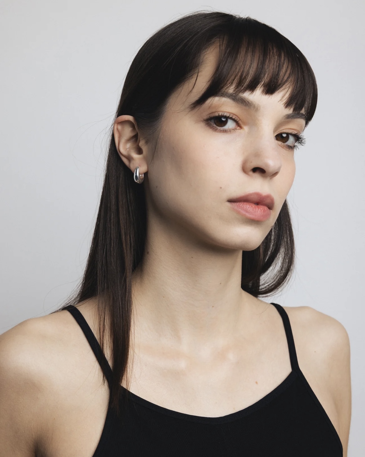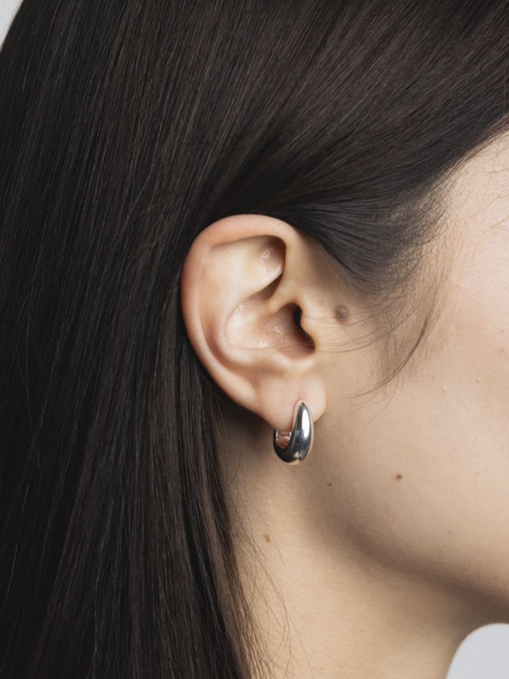 볼륨감 있는 돔 형태의 미드 사이즈 후프 이어링입니다.
