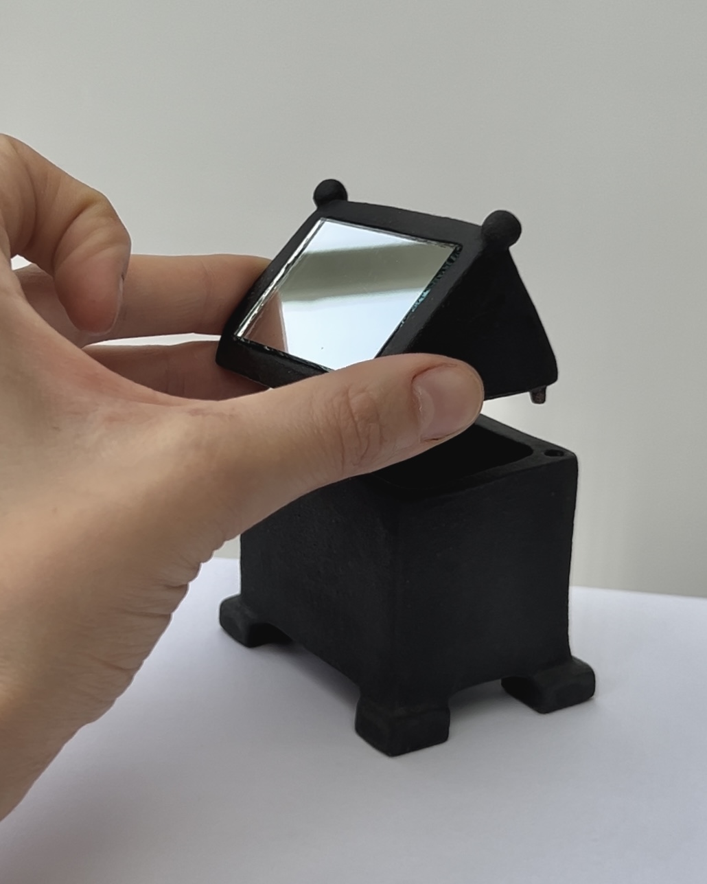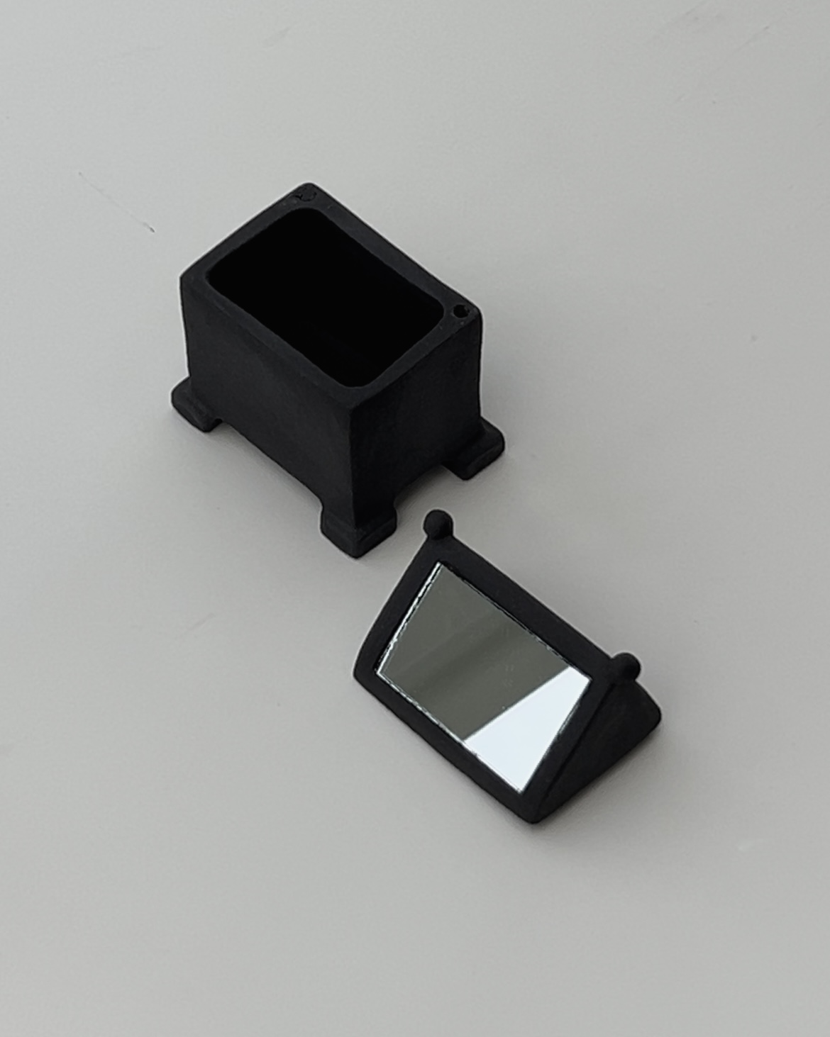 무광 블랙 표면과 거울의 반사면이 대비를 이루며, 주얼리 보관함으로 사용하기에 적당한 사이즈입니다.