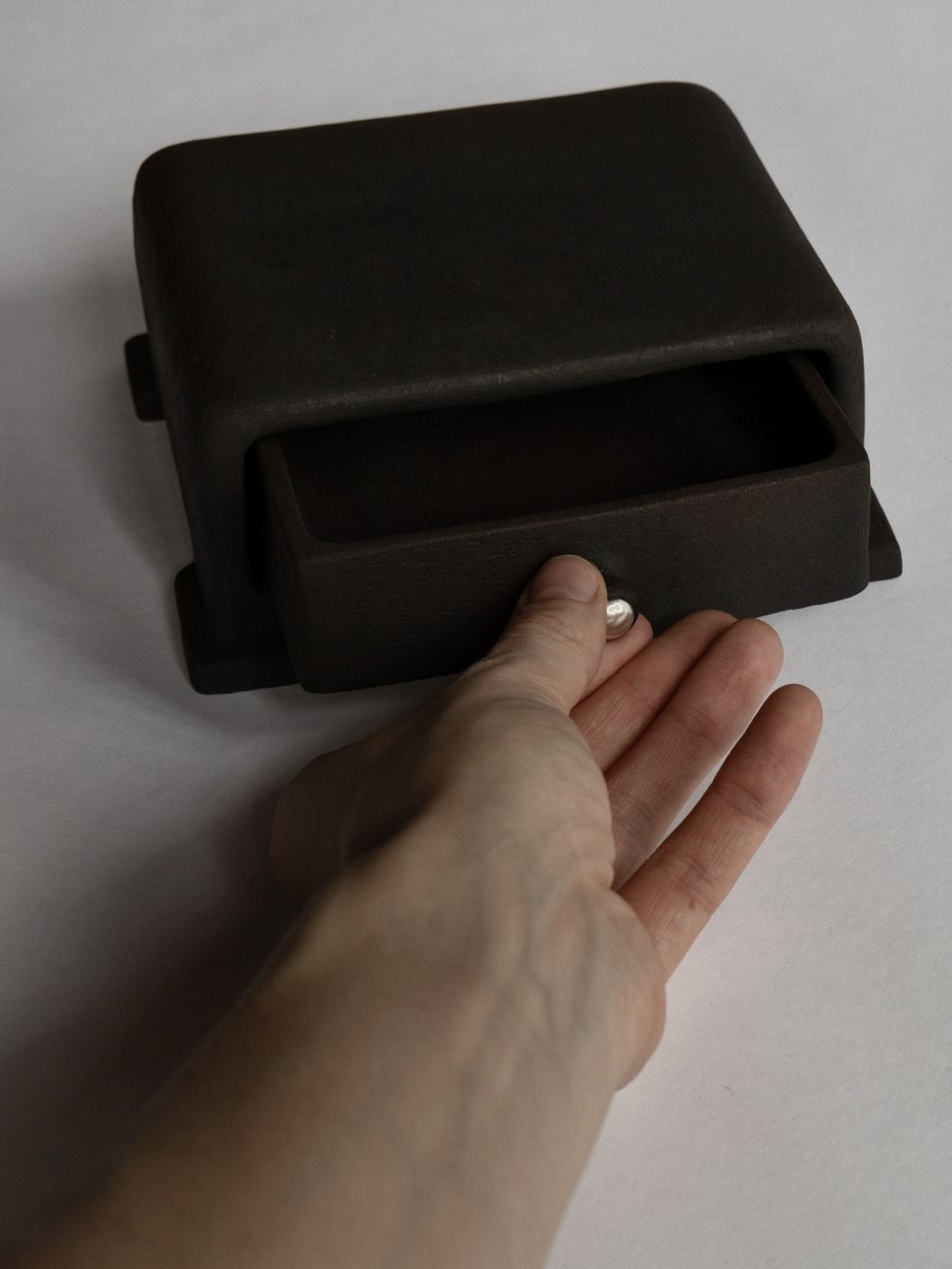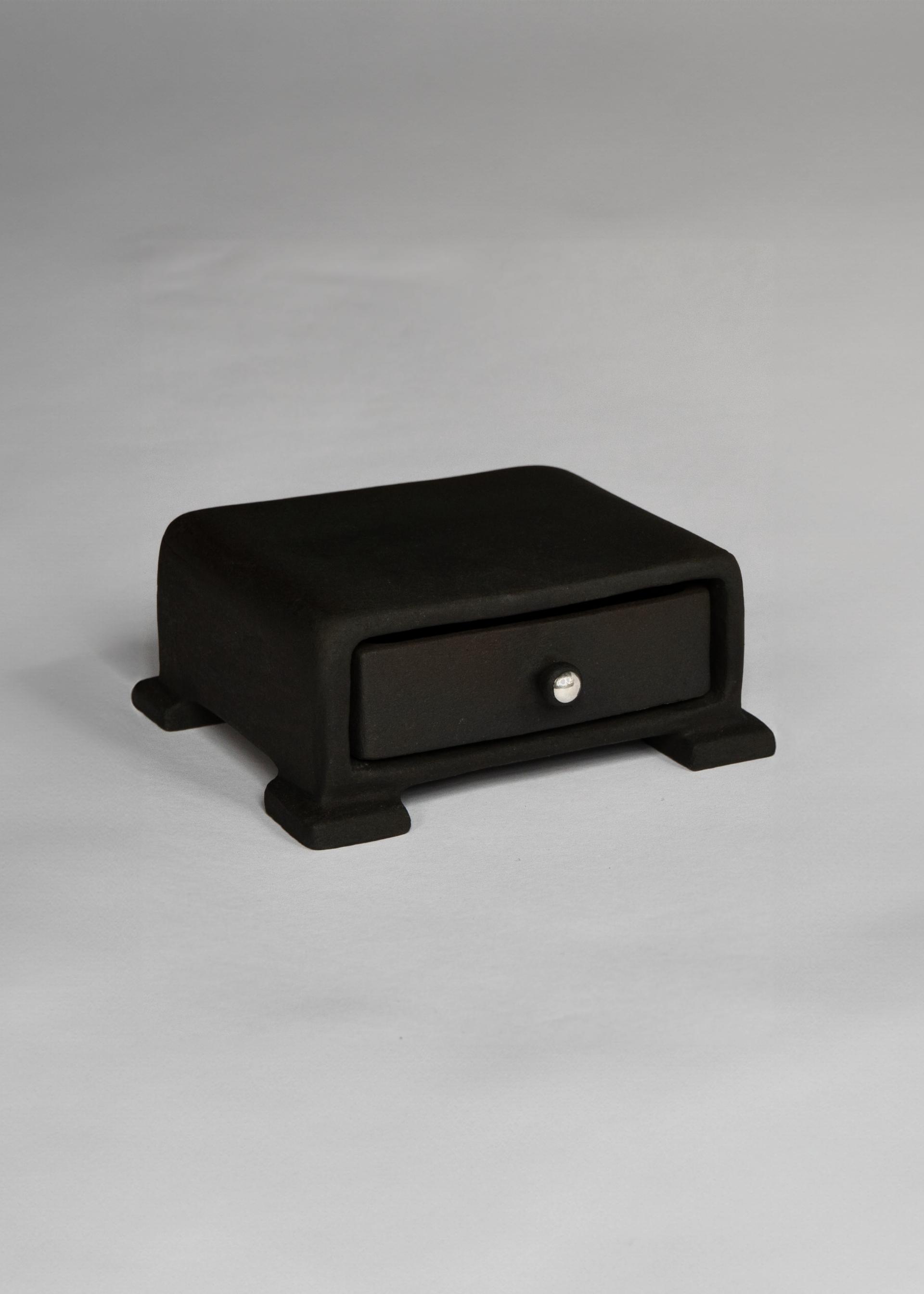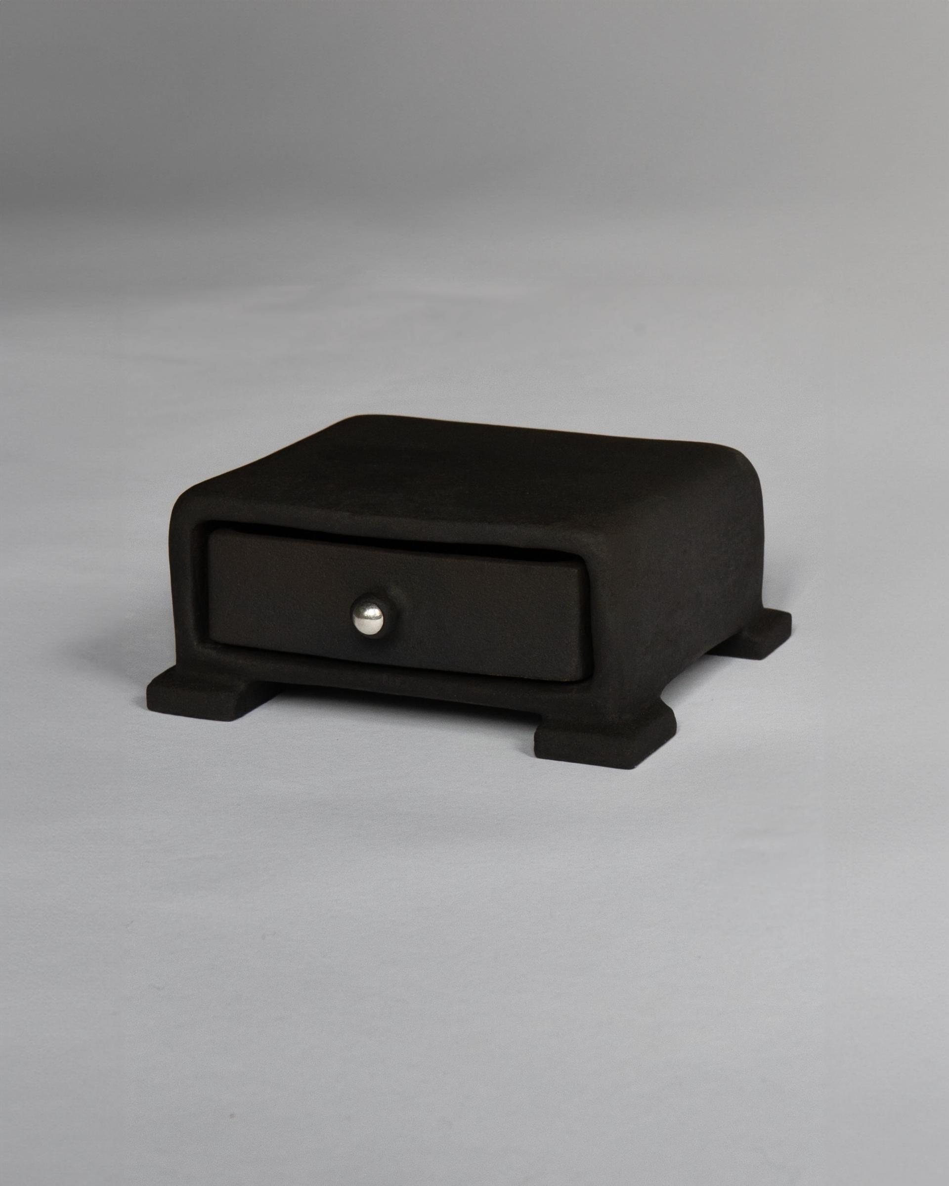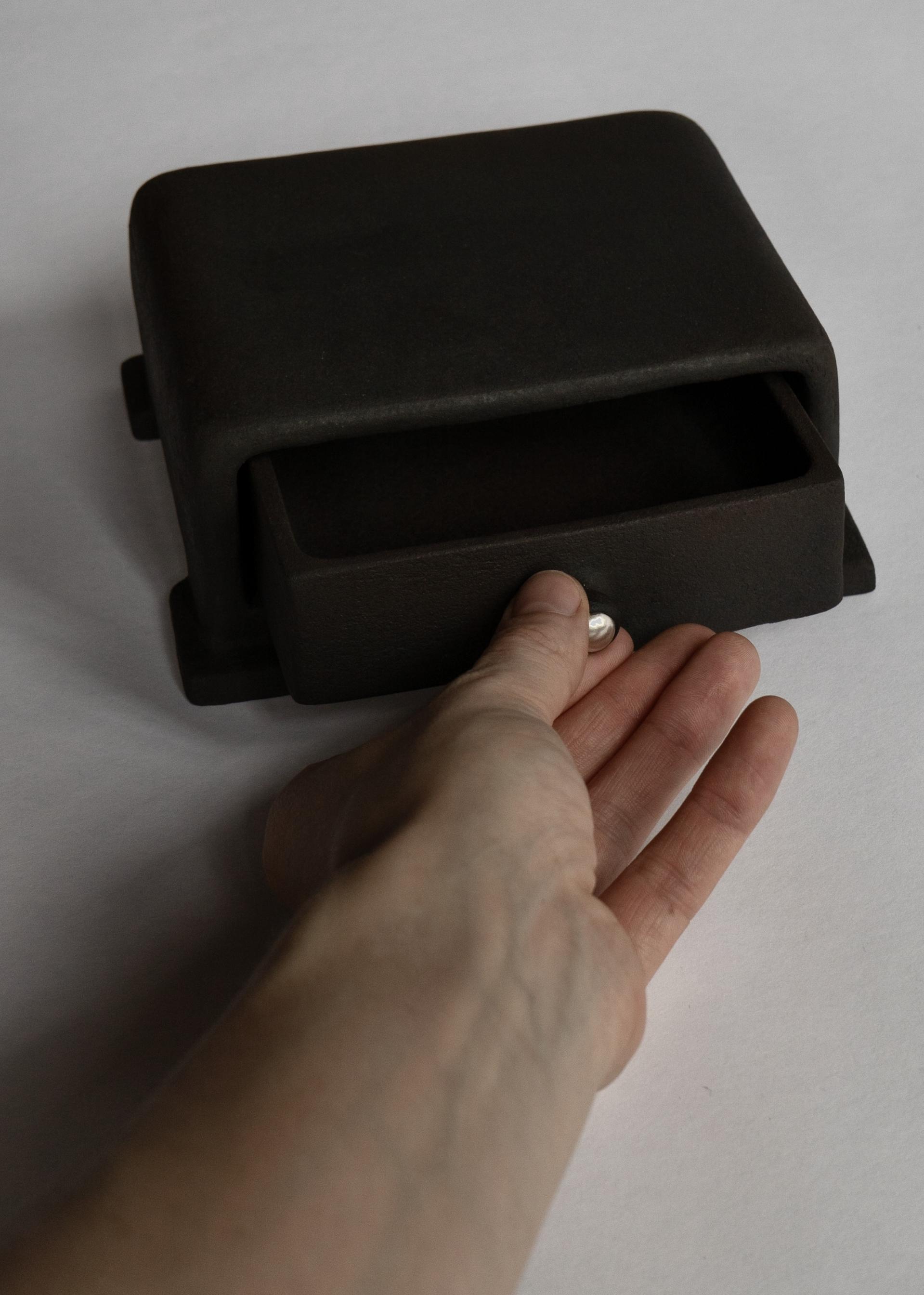 블랙 매트 유약으로 마감된 핸드메이드 세라믹 드로어 박스입니다.