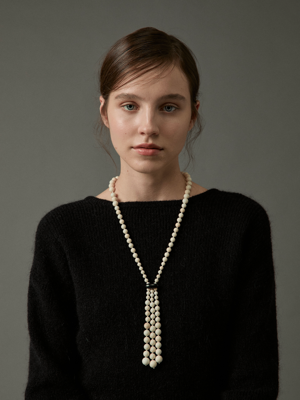 페피타(Pepita) 네크리스는 제이드 원석 비드와 오닉스 앵커 링크로 제작되었으며, 실크 실로 정교하게 엮어 완성된 목걸이입니다.