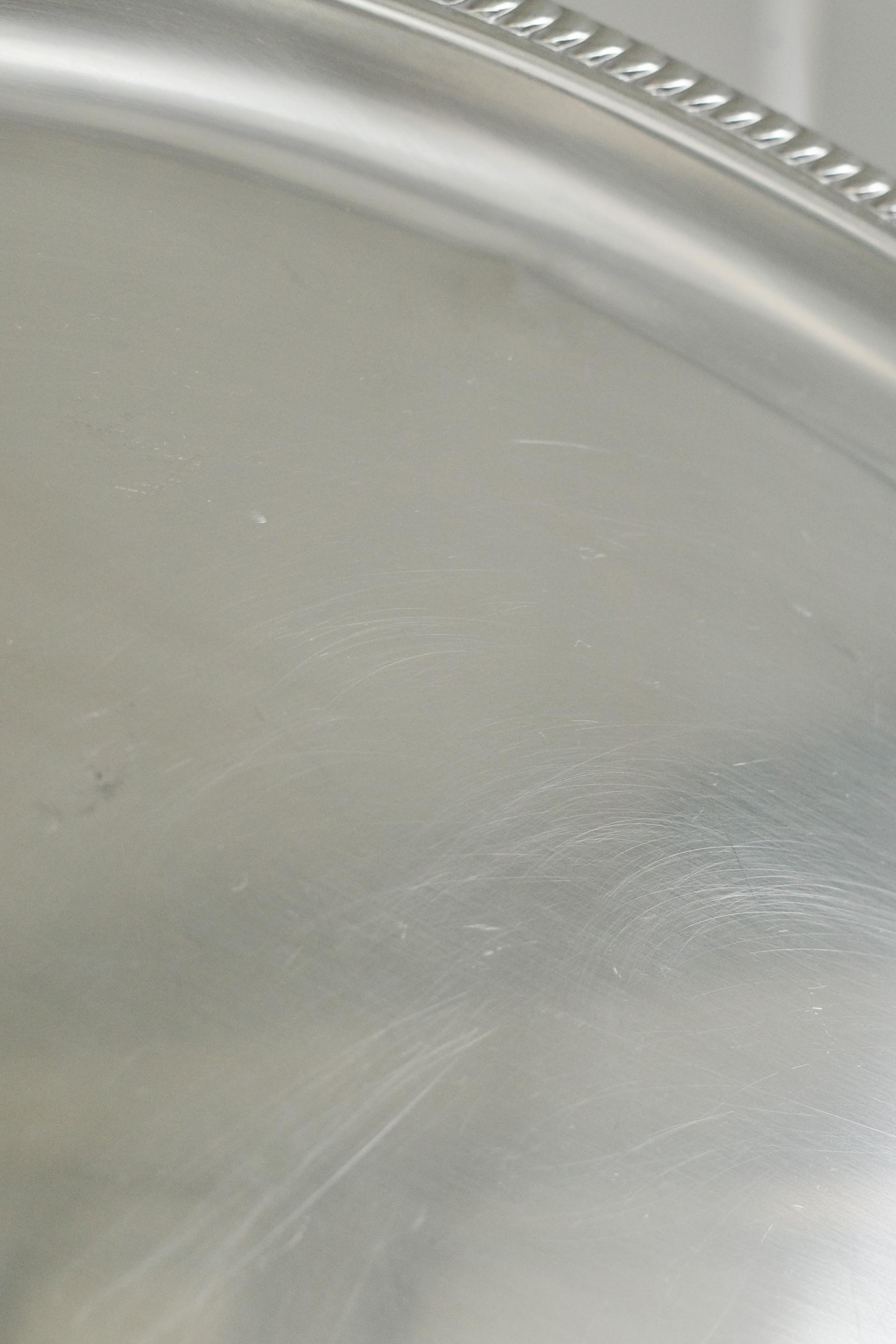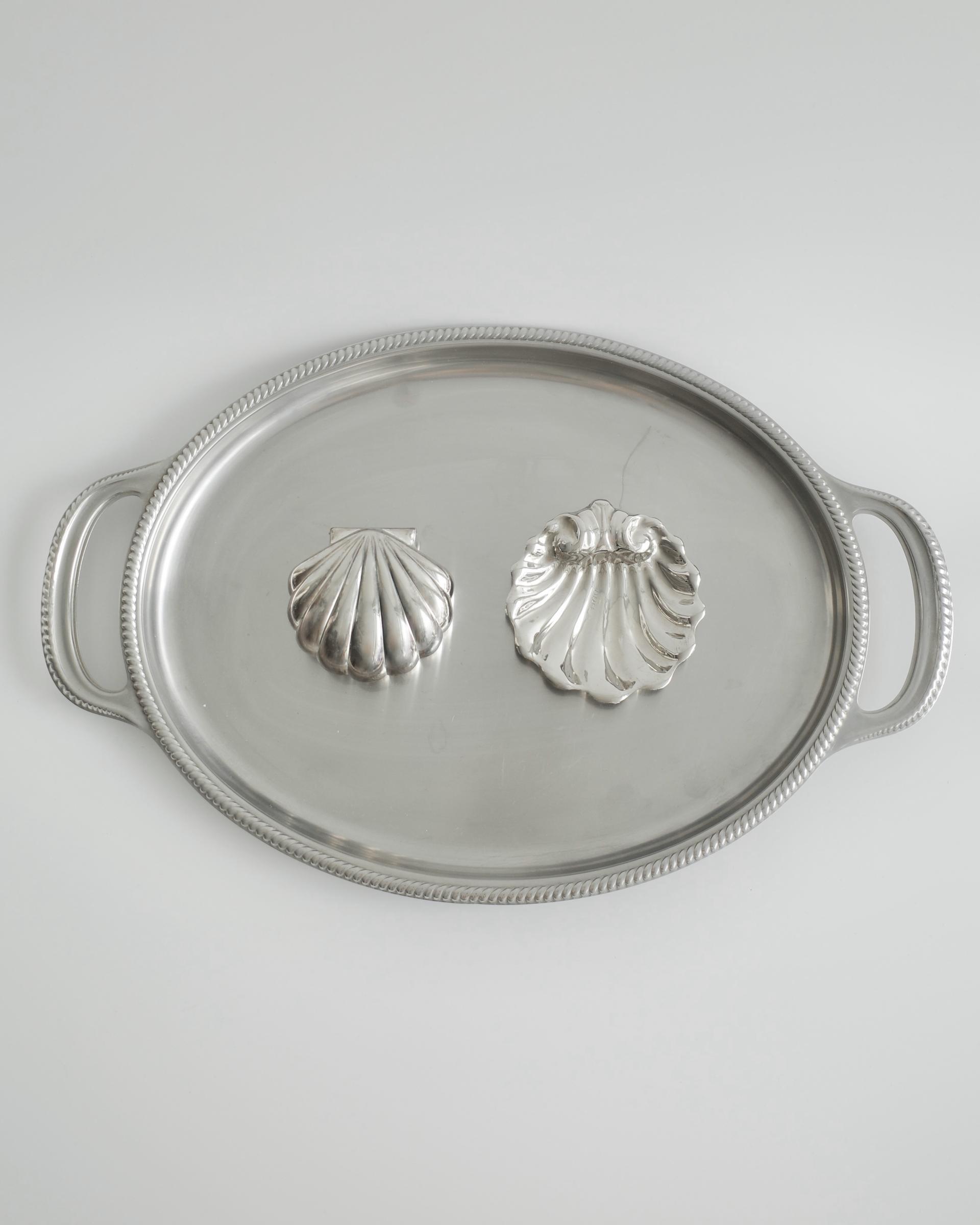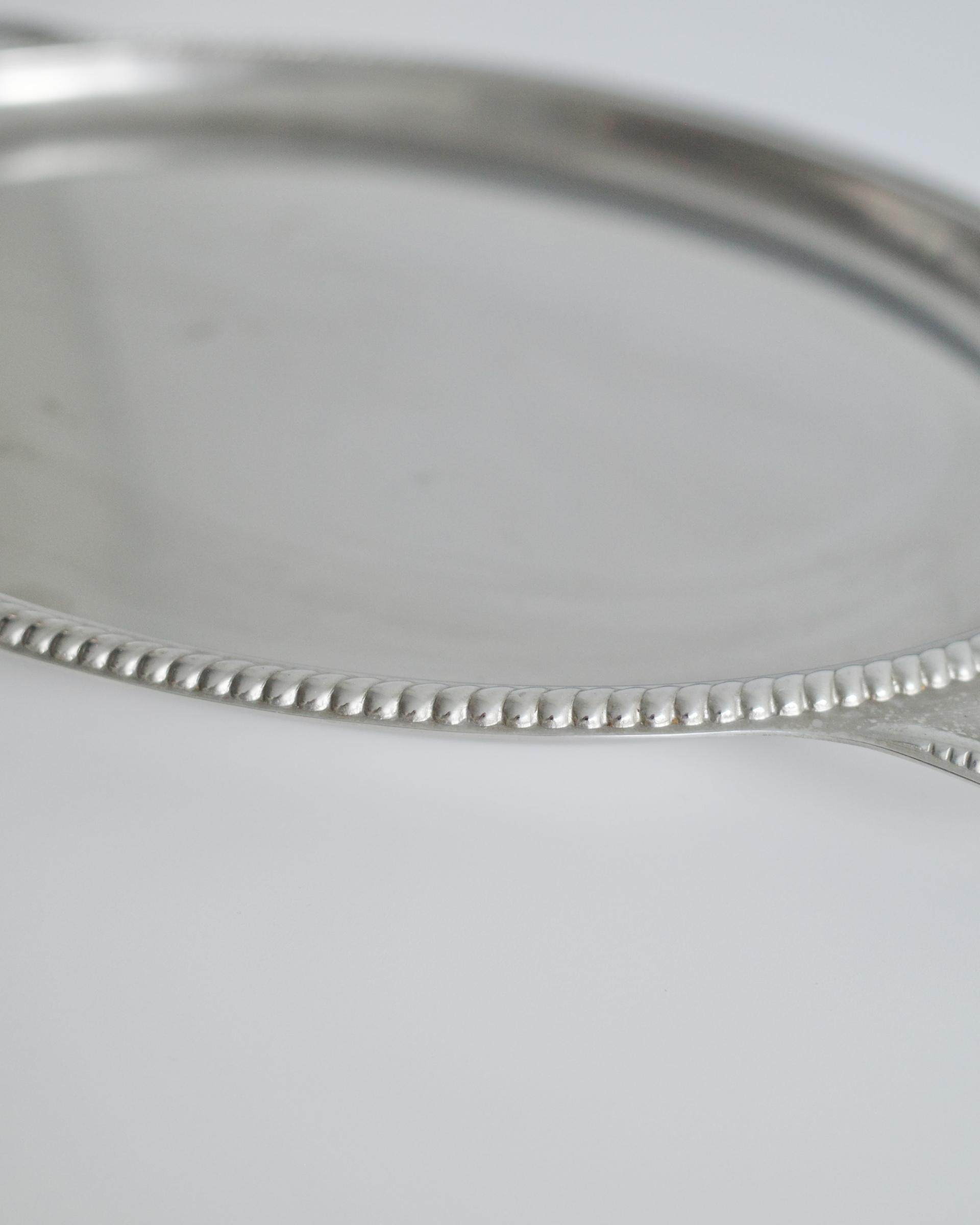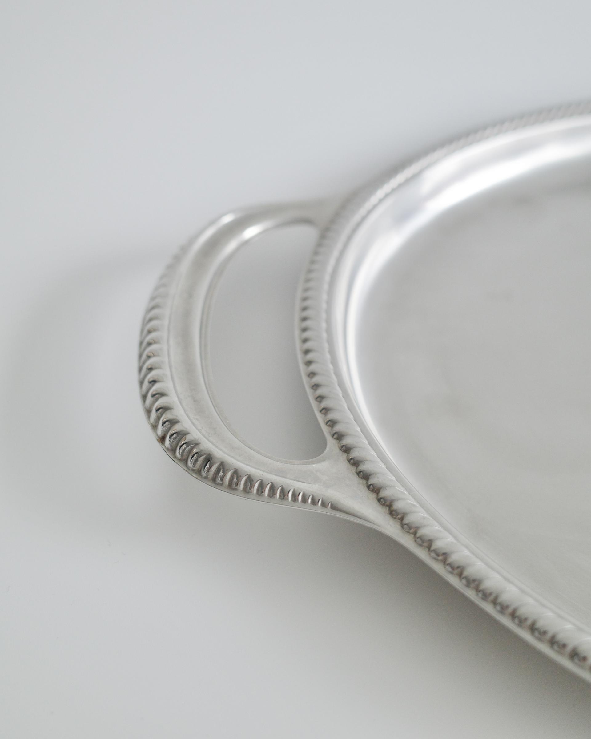우아한 곡선과 섬세한 엠보싱 디테일이 돋보이는 서빙 트레이입니다.