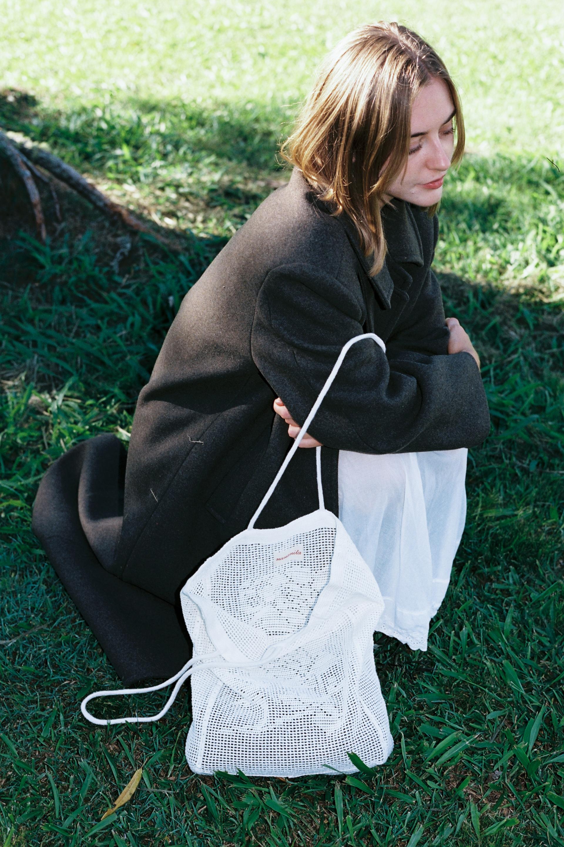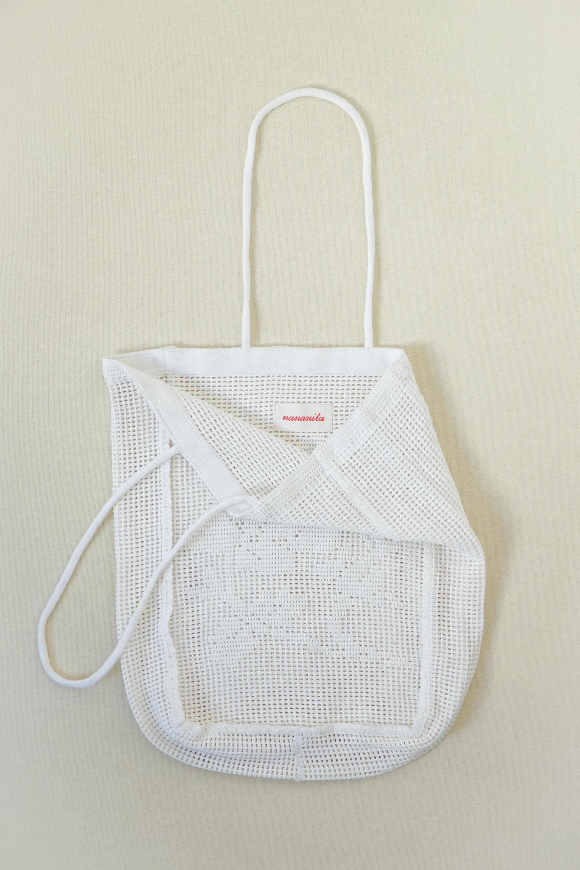 인도 현지 장인들이 크로셰 기법으로 수작업 제작한 가방으로, 크로셰 특유의 입체적인 조직감과 자연스러운 실루엣이 드러납니다.