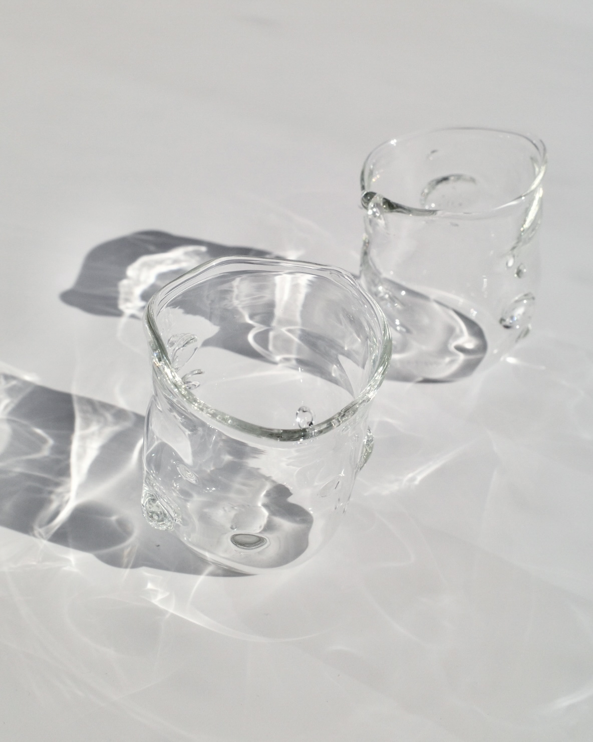 핸드 블로잉 기법으로 제작된 내열 유리 찻잔입니다.