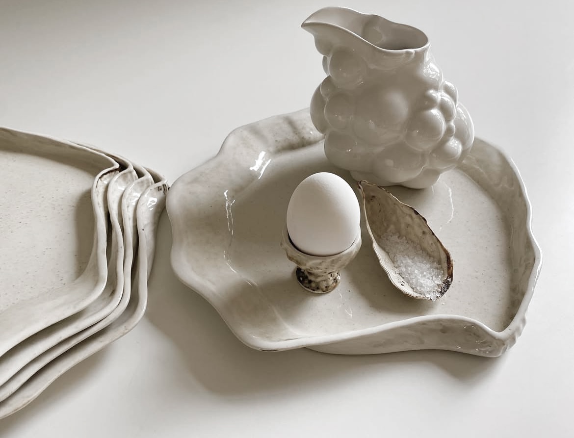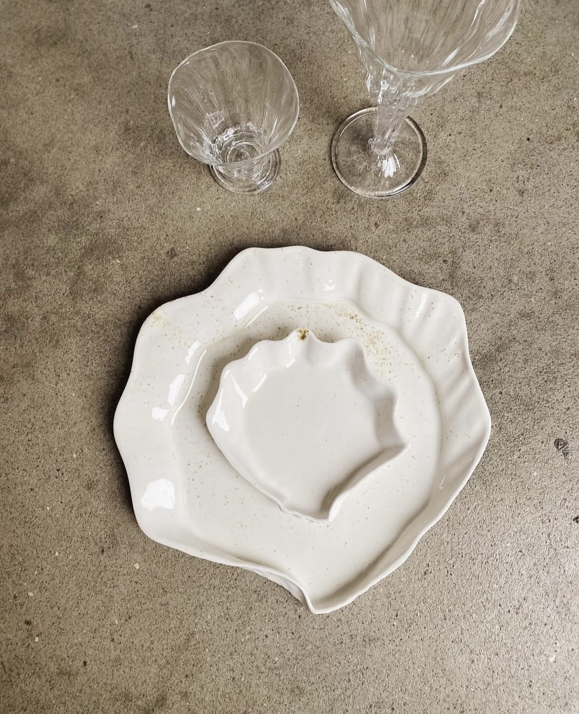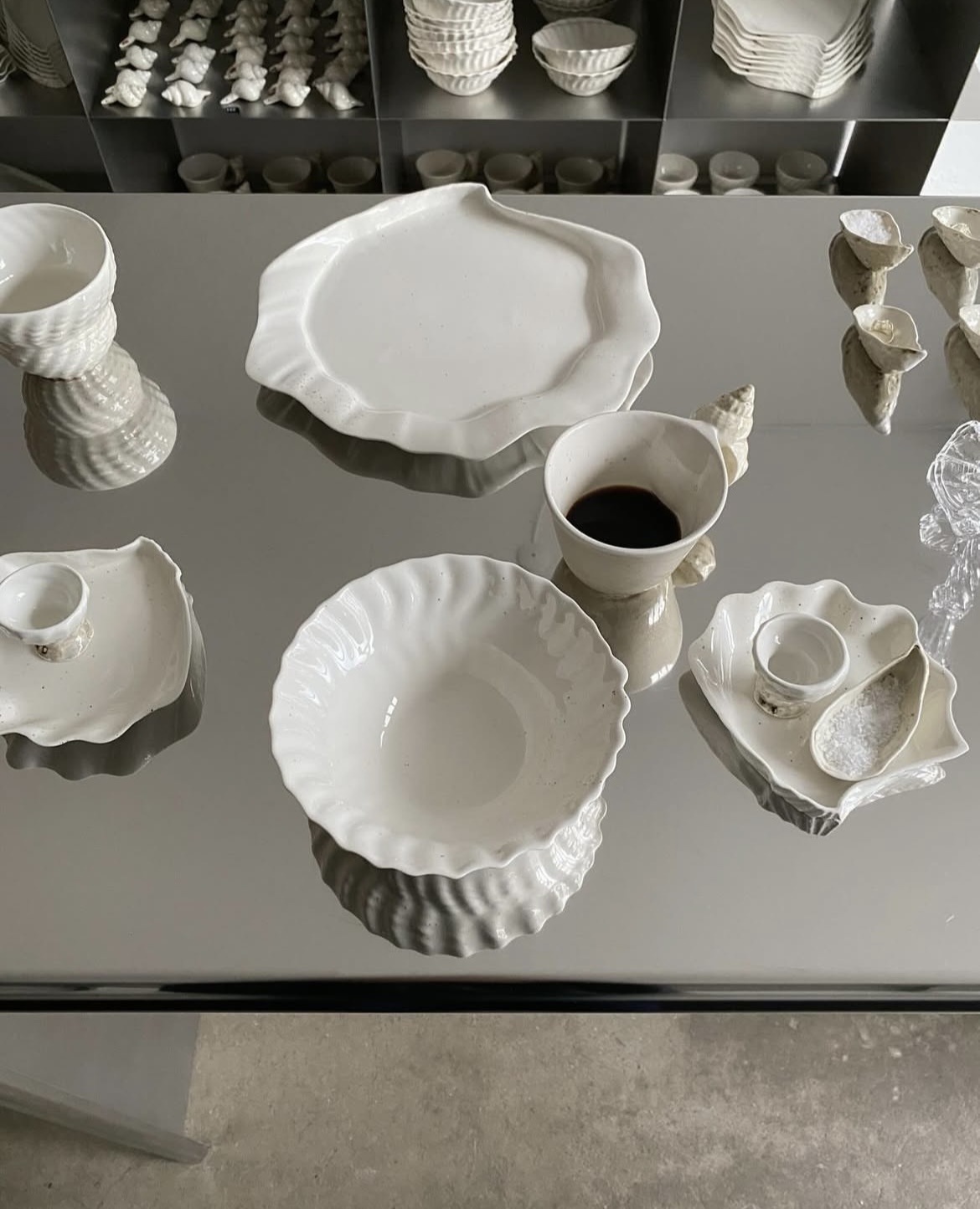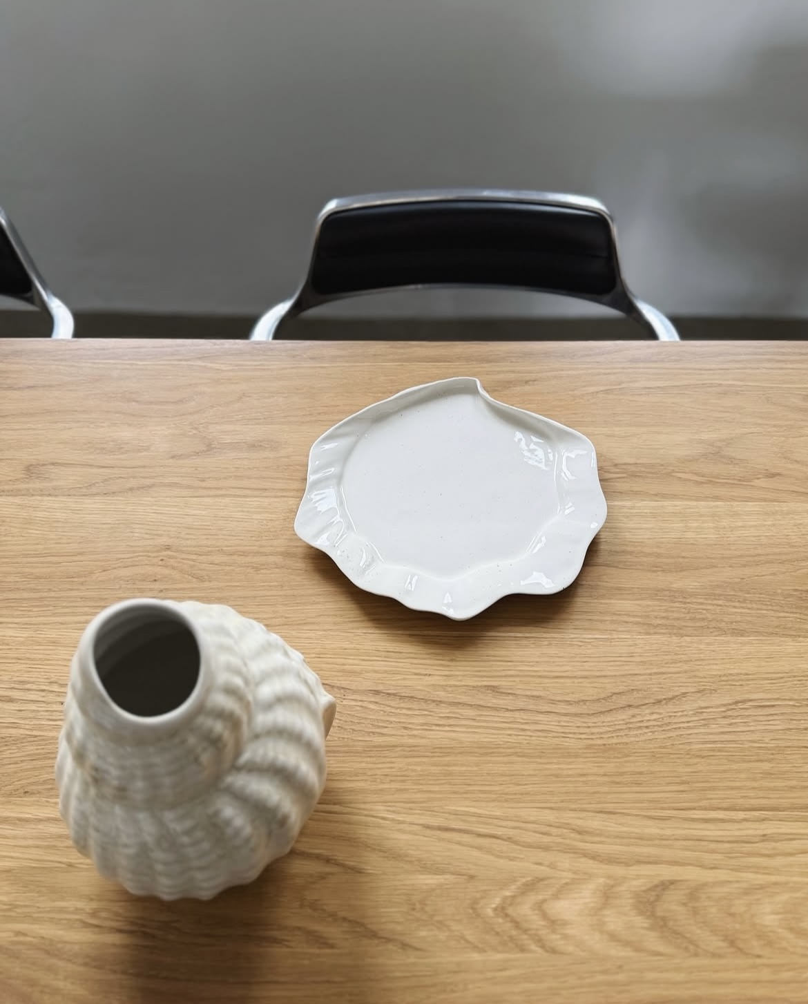 조개껍데기에서 영감을 받은 부드러운 방사형 패턴과 자유로운 곡선미를 담아낸 플레이트로, 정형화된 틀을 벗어나 테이블 위에서 감각적인 존재감을 드러냅니다.